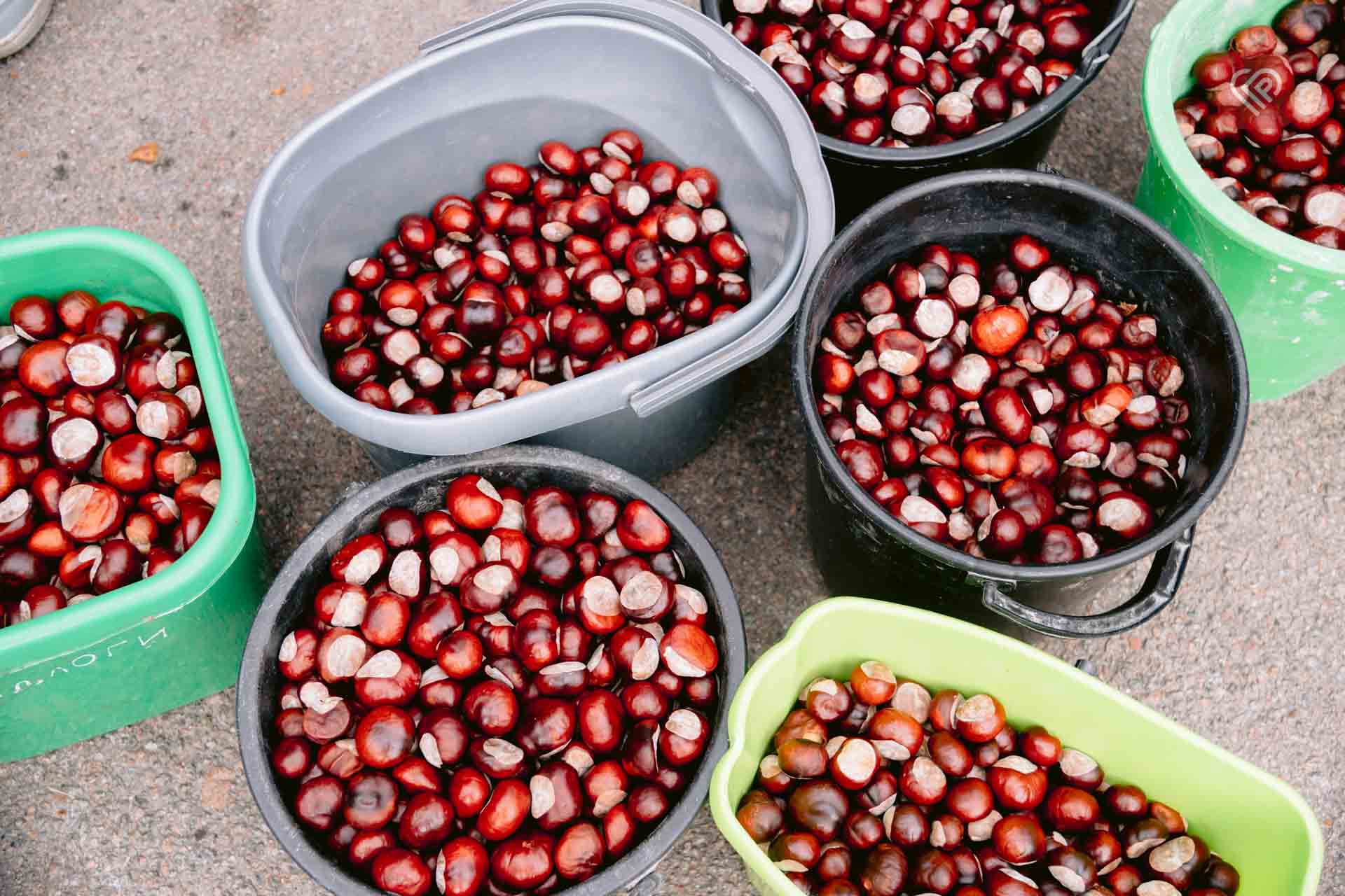 Далі плоди каштанів сушать і здають фармацевтичним компаніям. З них виготовляють ліки для опорно-рухового апарату, мазі, косметику, шампуні та багато іншого.