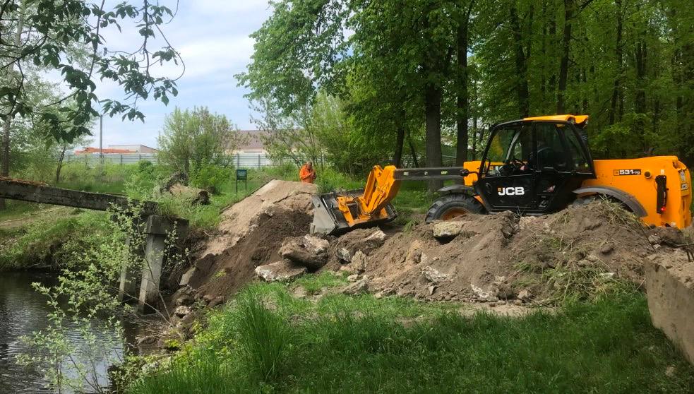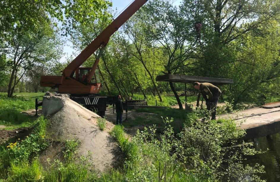 У перший день робіт було демонтовано плити перекриття, наступного – додатково укріплено палі, які похилилися. Окрім цього було зроблено розчистку прилеглої території і укладено плити таким чином, щоб було зручно долати міст і пішоходам і велосипедистам чи скутеристам.