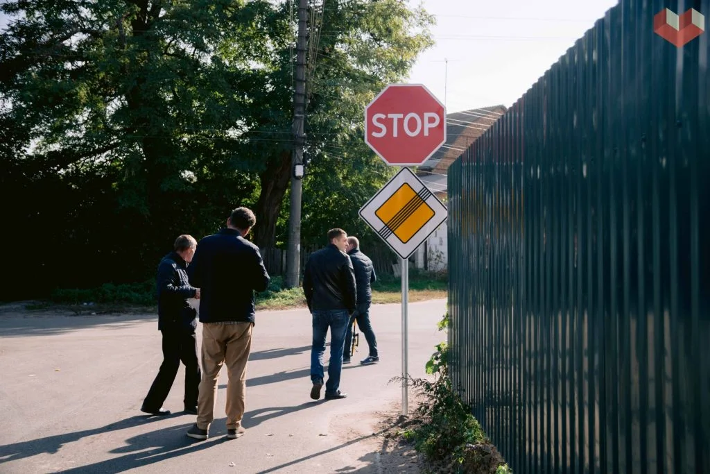 Таким чином відбувається підготовка до кінцевого прийняття в експлуатацію вулиці, де цього дня перевірили виконану роботу, відповідність розмірів до проектної документації та встановлення дорожніх знаків.
