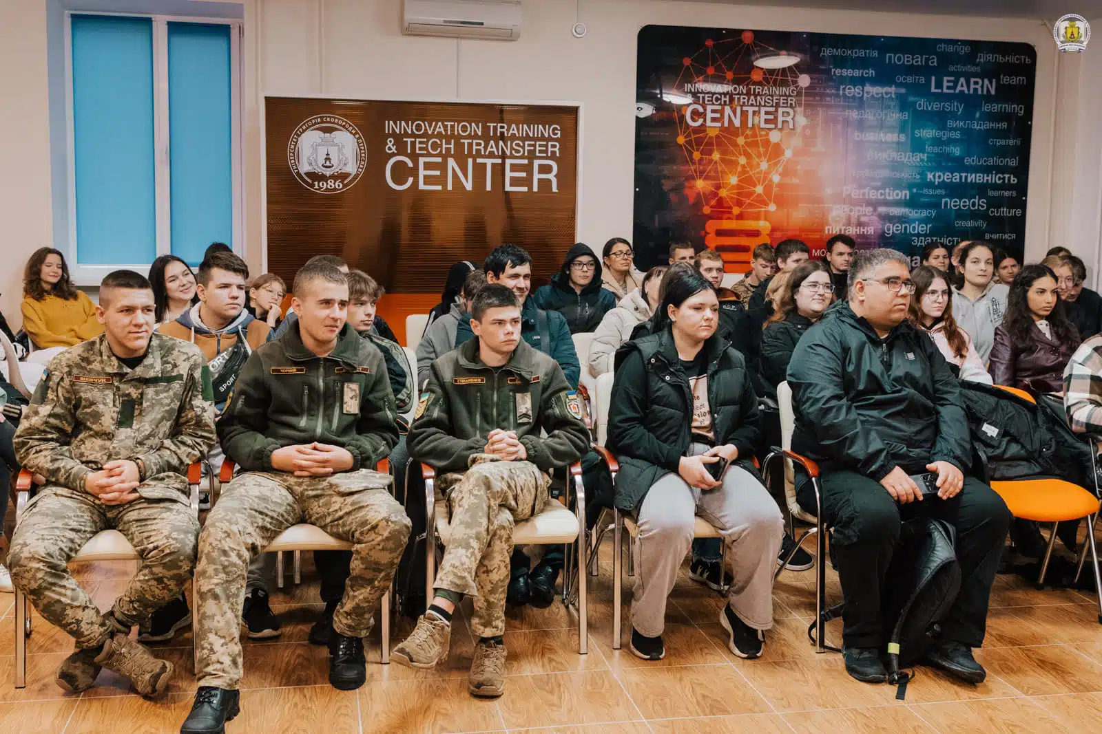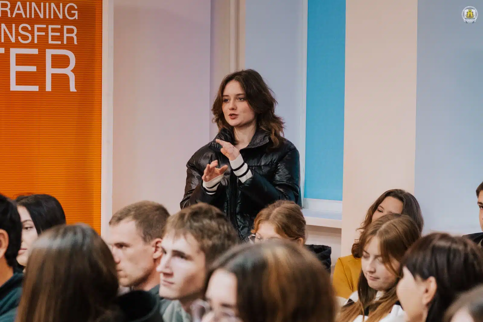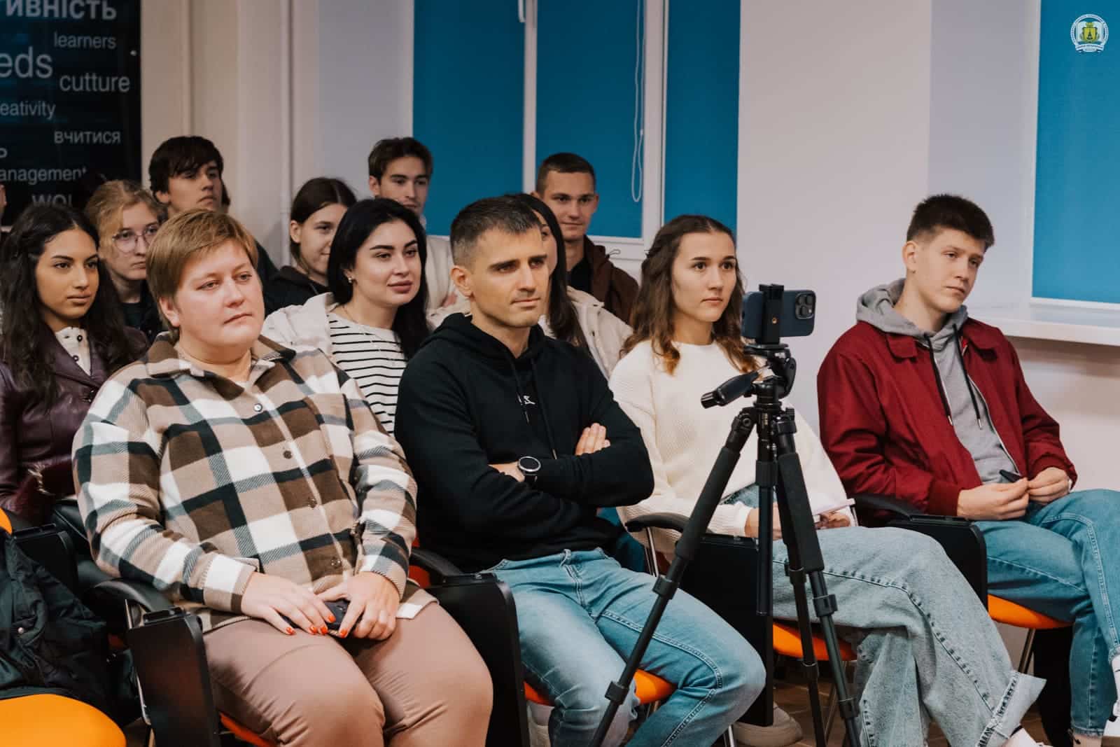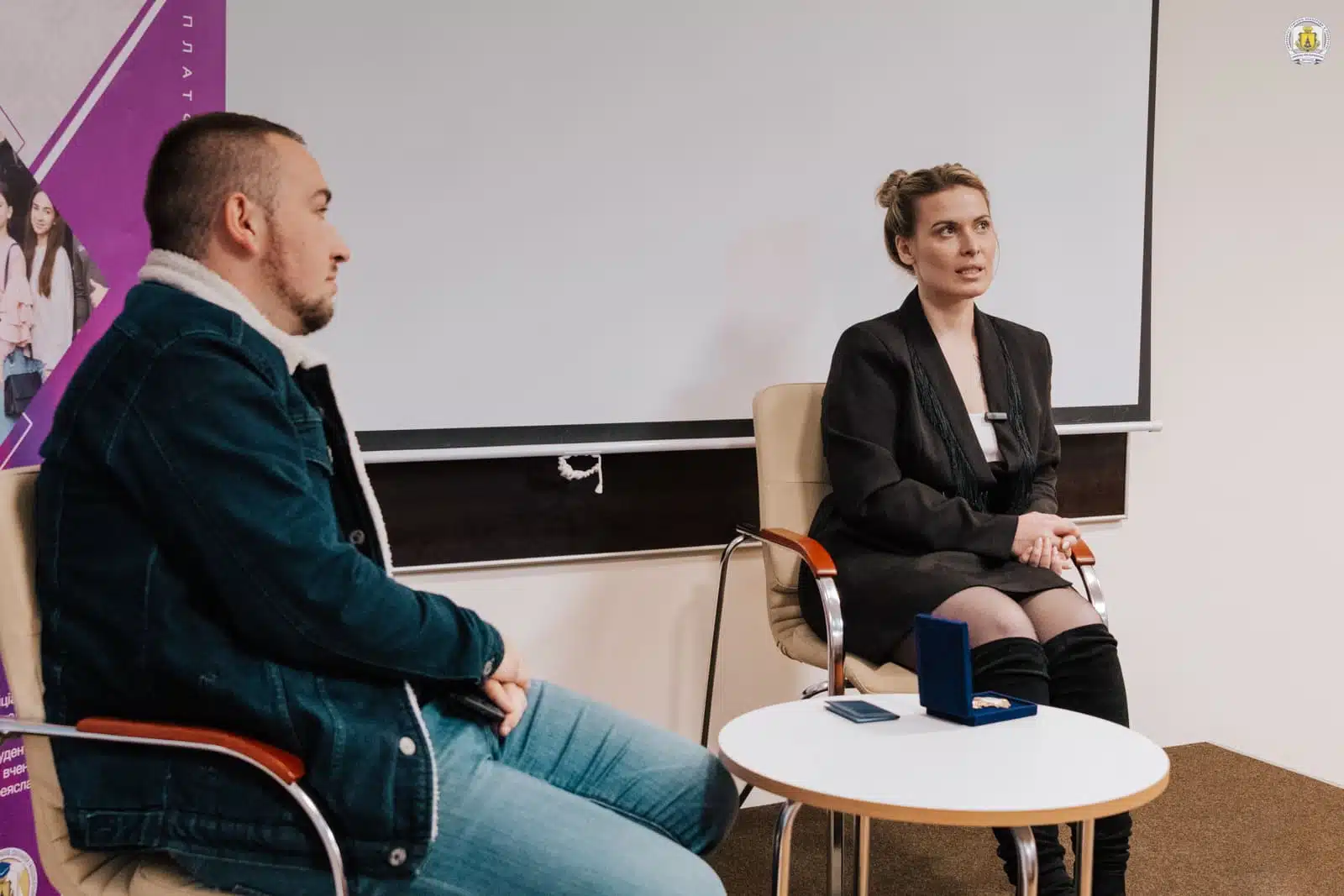 Зустріч відкрилася теплим жестом від ректора університету Віталія Коцура, який вручив Юлії Карповій почесну відзнаку «Волонтер України». Він підкреслив, що ця нагорода – подяка від усього колективу, студентського самоврядування та викладачів за її неоціненний внесок у підтримку літніх людей, військових і дітей з інвалідністю через фонд «Юлині бабусі». Зворушена Карпова назвала цю відзнаку третьою гордістю свого життя поряд з фондом і допомогою військовим, які підірвали Кримський міст.