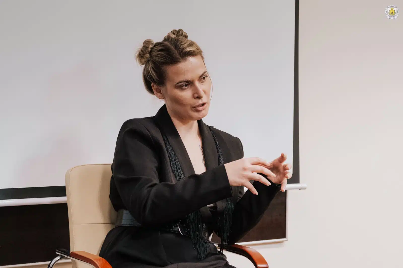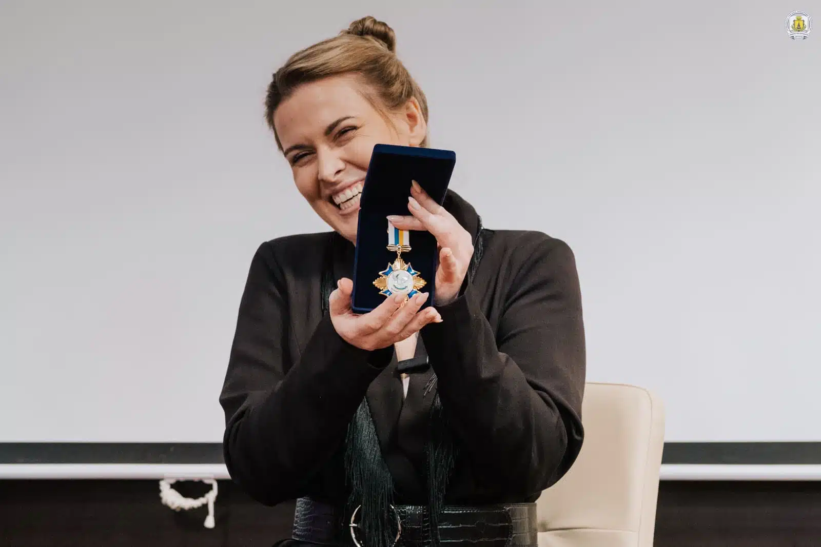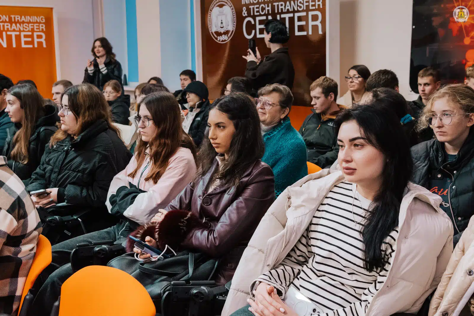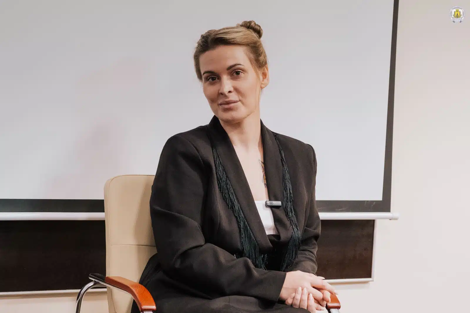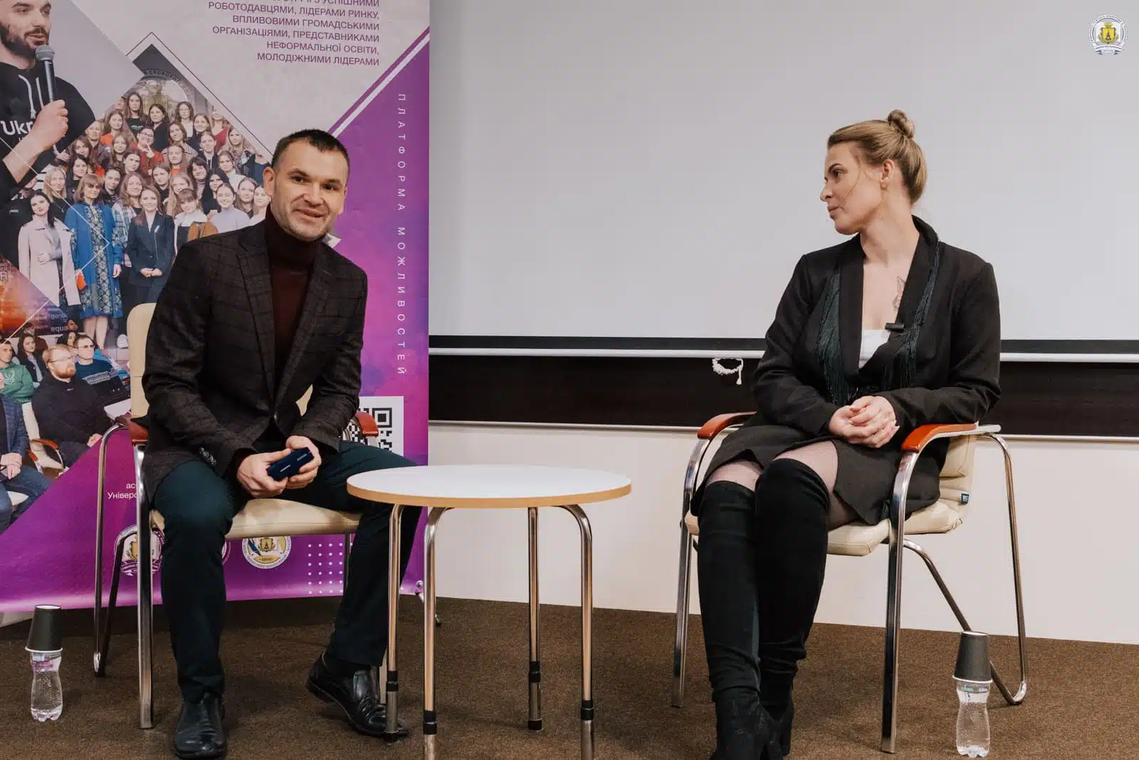 Зустріч відкрилася теплим жестом від ректора університету Віталія Коцура, який вручив Юлії Карповій почесну відзнаку «Волонтер України». Він підкреслив, що ця нагорода – подяка від усього колективу, студентського самоврядування та викладачів за її неоціненний внесок у підтримку літніх людей, військових і дітей з інвалідністю через фонд «Юлині бабусі». Зворушена Карпова назвала цю відзнаку третьою гордістю свого життя поряд з фондом і допомогою військовим, які підірвали Кримський міст.