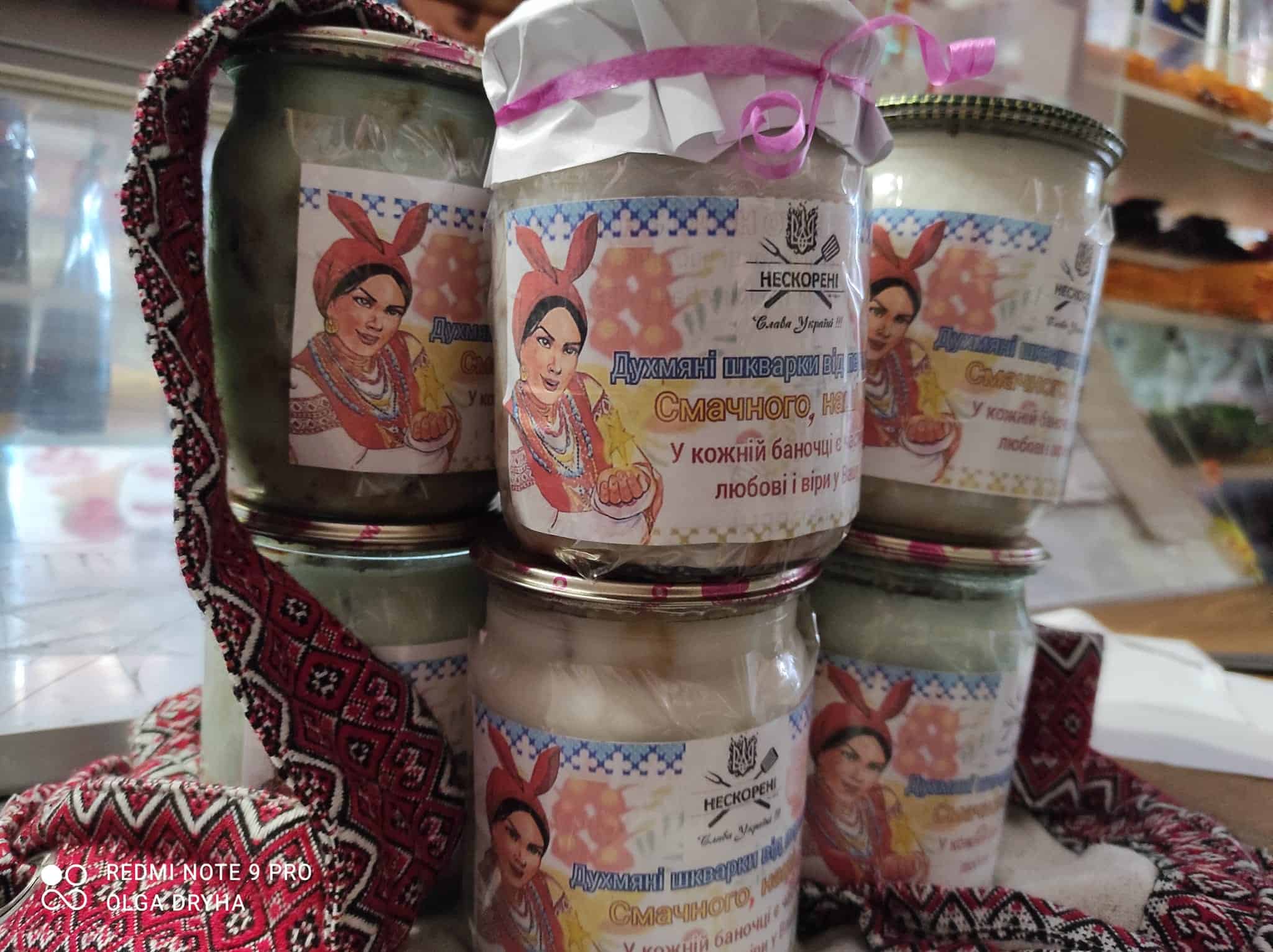 «Чергова порція природньої «біодобавки» у вигляді духмяних шкварок, що у поєднанні з борщем «Смачним Переяславським» дуже гармонує і складає корисний наїдок, приготовлена і невдовзі буде відправлена нашим бійцям», – написала вона.