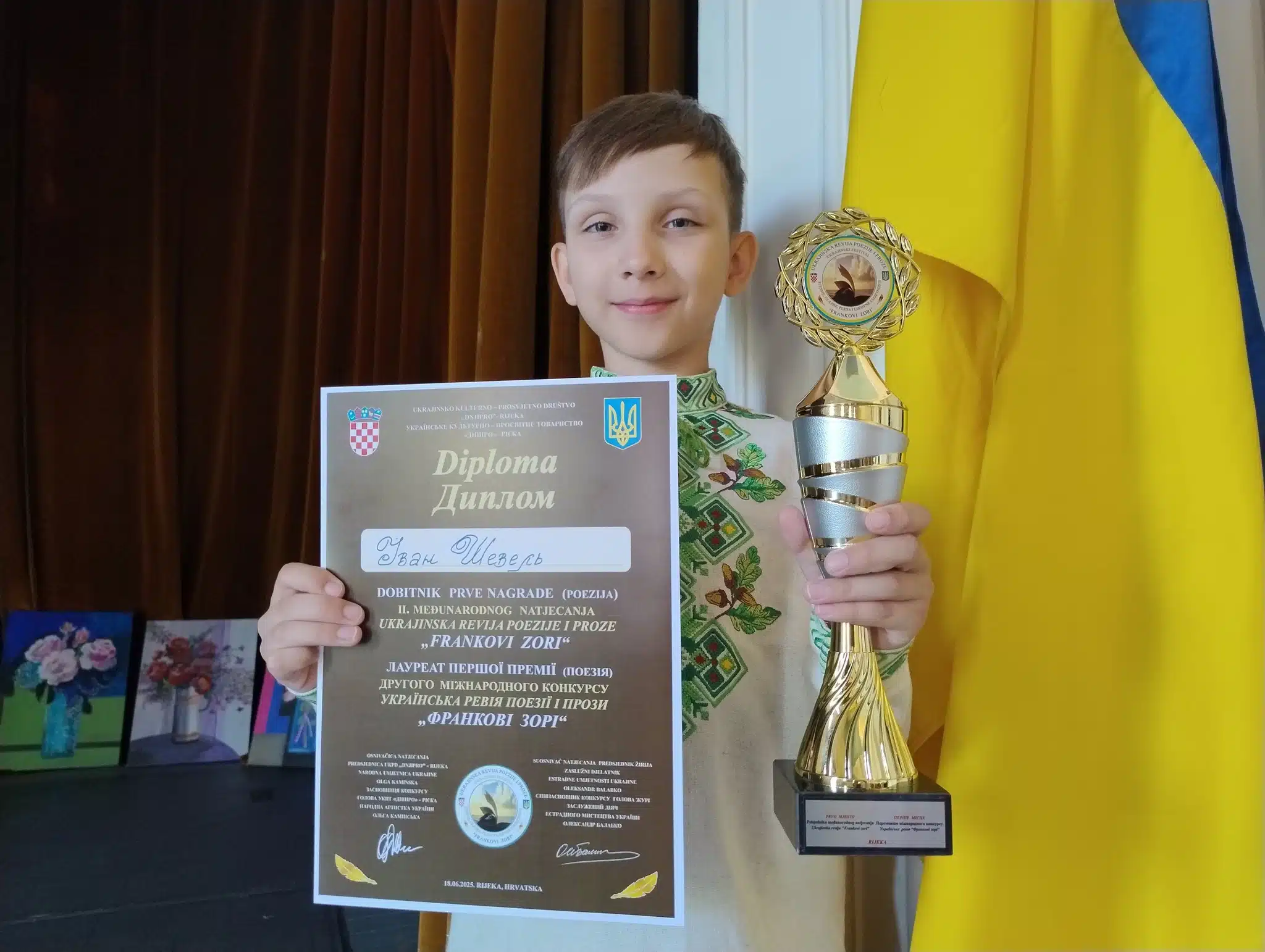 На Другому міжнародному конкурсі «Українське поетично-прозове ревю «Франкові зорі» у Хорватії письменниця з Переяслава Вікторія Шевель та її син Іван гідно представили Україну та здобули нові нагороди, повідомляє Proslav.