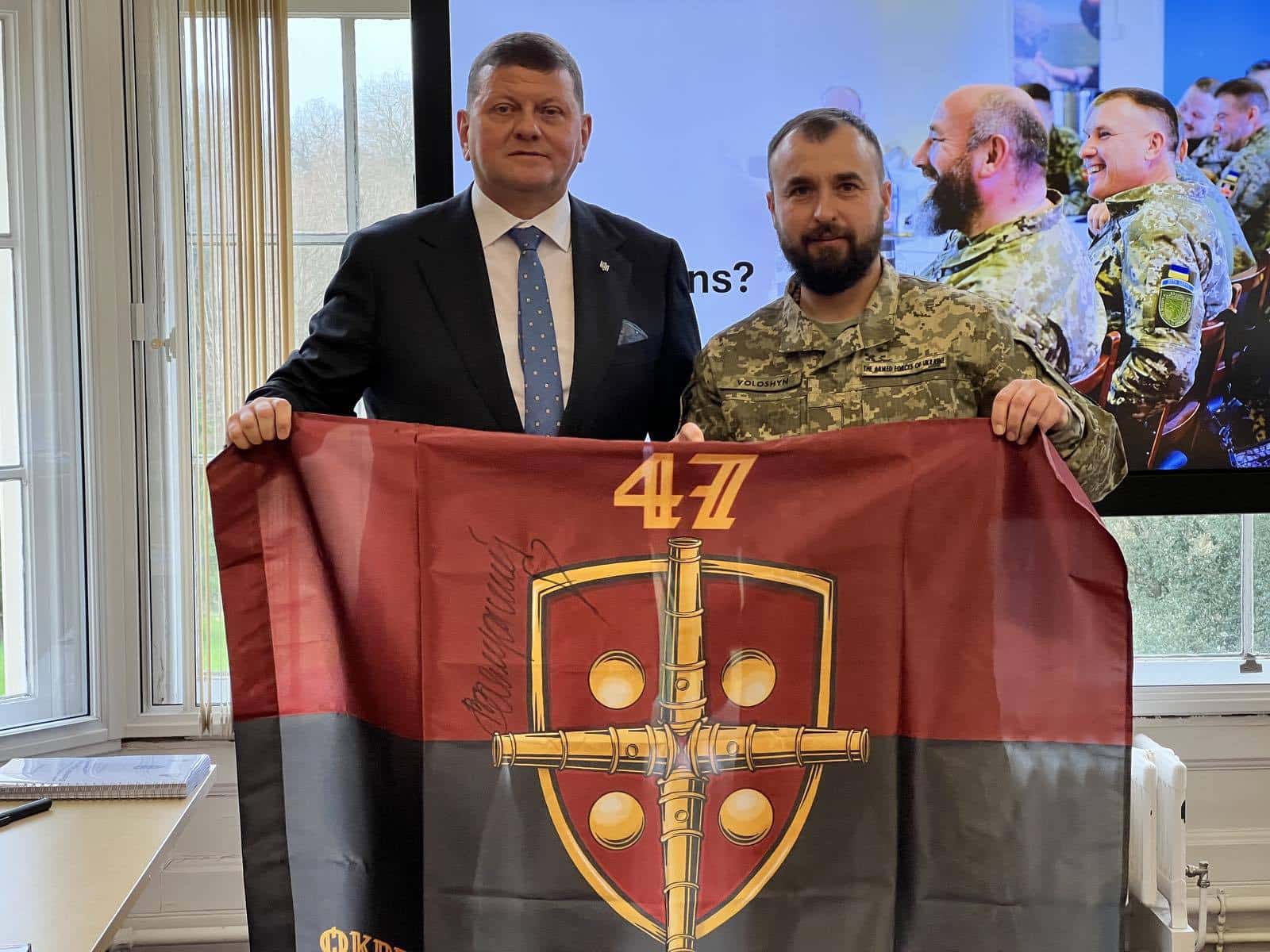 Нині Волошин перебуває у Великій Британії, де переймає досвід своїх колег, загартовує свою місію, аби скоро повернутися до наших воїнів й надавати їм духовну підтримку. На світлинах, опублікованих капеланом, видно, що під час зустрічі Залужний підписав прапор 47-ї окремої артилерійської бригади.