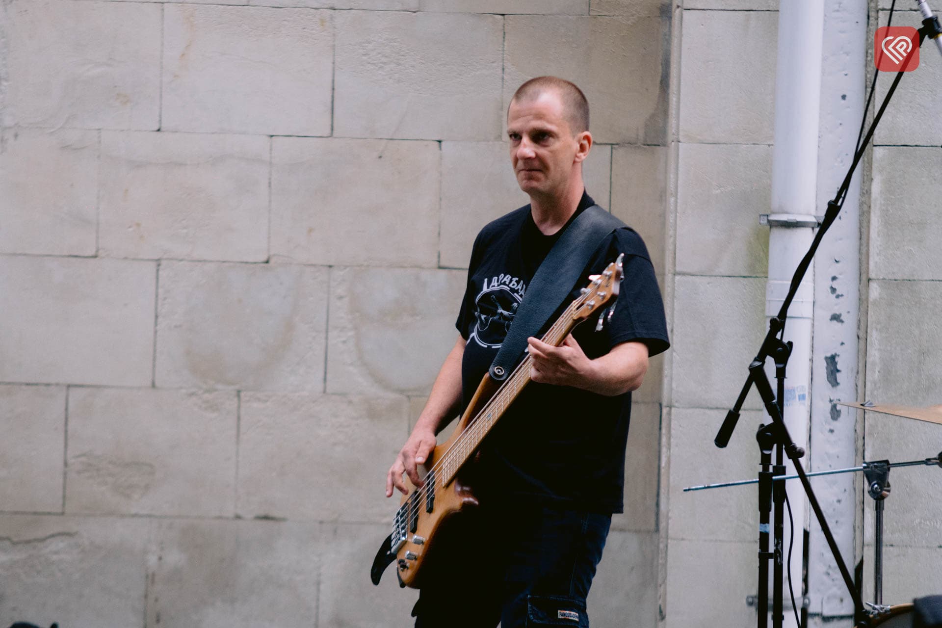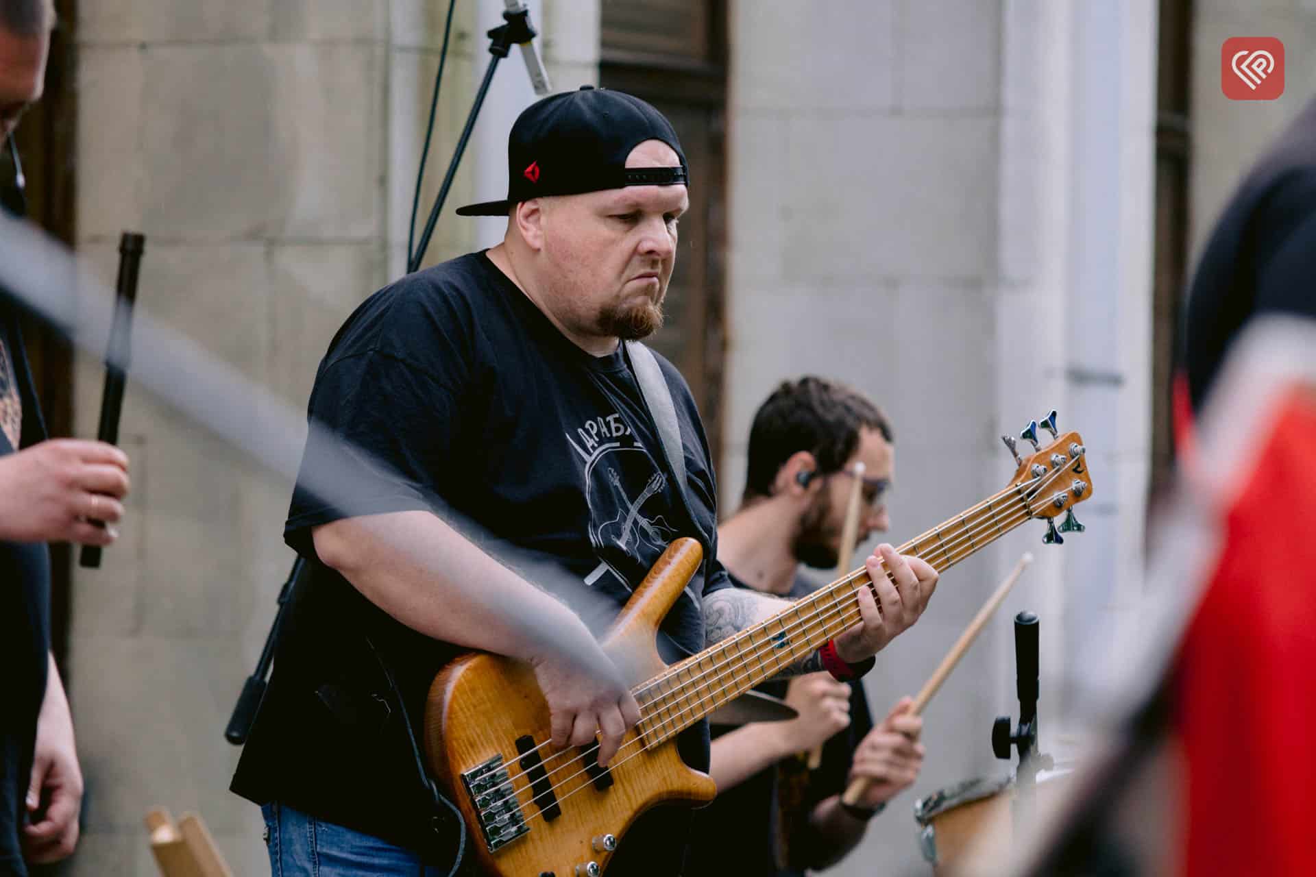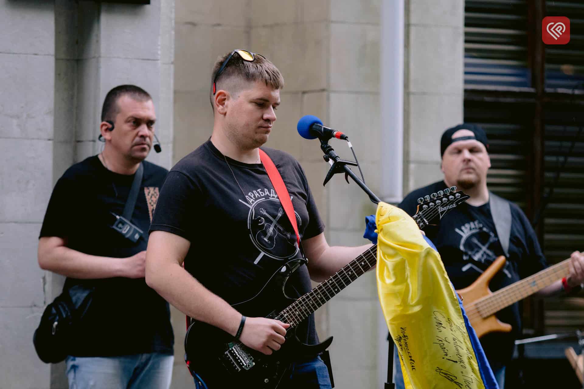 Під кінець концерту, на кілька пісень, до музикантів доєднався барабанщик Володимир Бурлак, який є військовим ЗСУ.