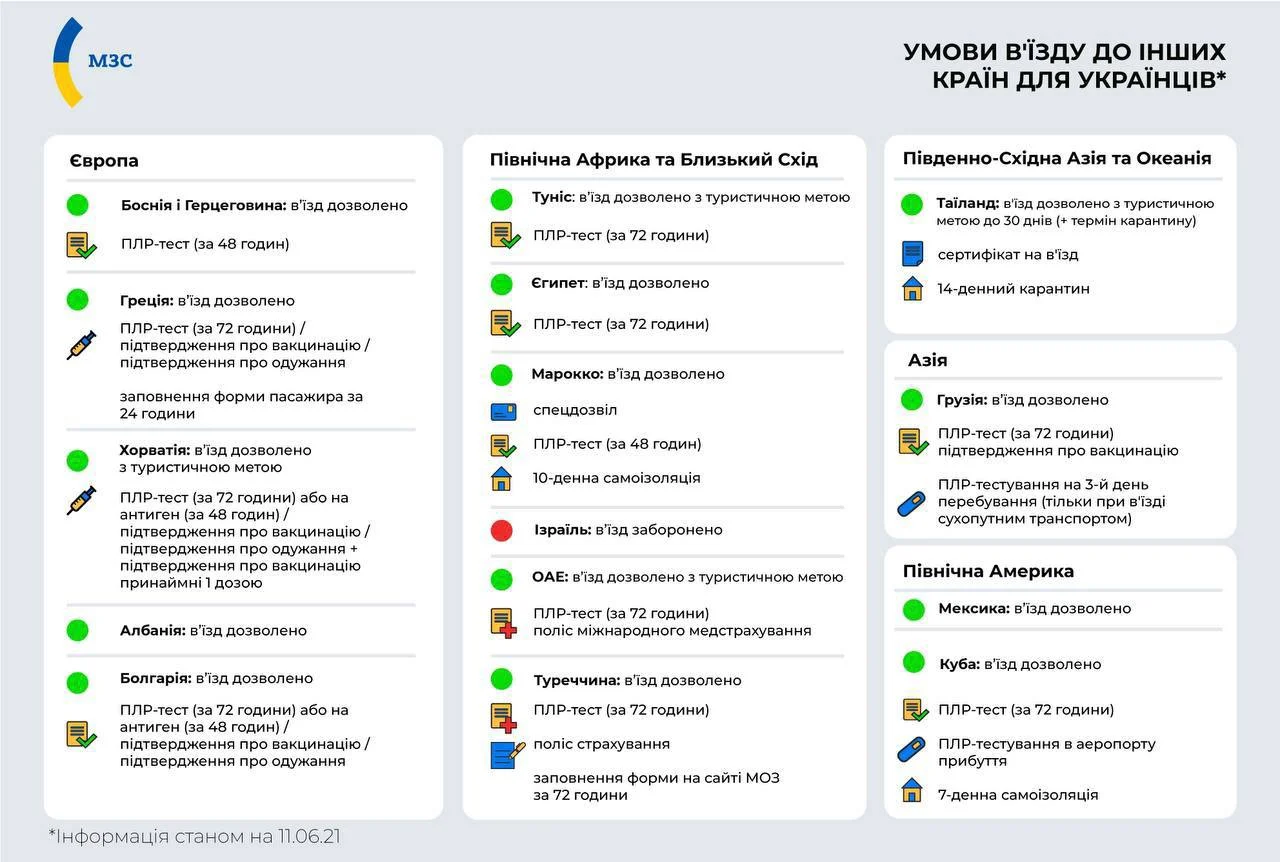 Триває сезон відпусток, тож нагадуємо, що через COVID-19 при відвідуванні популярних туристичних напрямків діє низка обмежень і вимог.