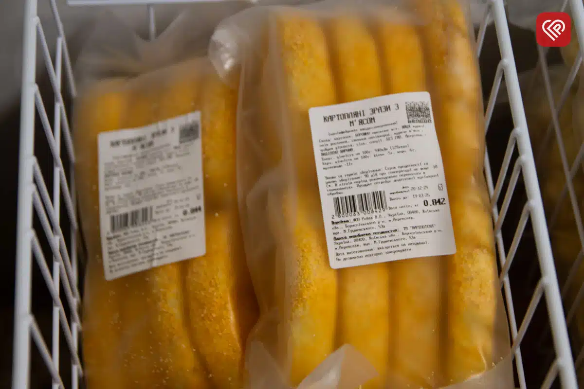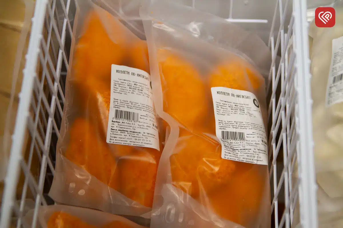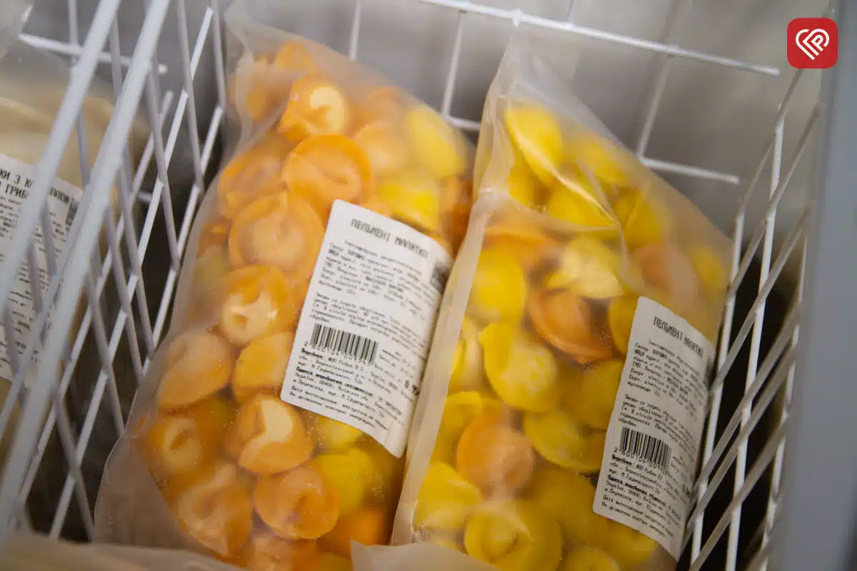 Після шокової заморозки кожну страву запаковують у харчовий дой-пак, що забезпечує якісне збереження продукту та захищає від сторонніх запахів. Пакування містить етикетку з детальною інформацією: склад, дата виробництва, кінцевий термін споживання та умови зберігання.