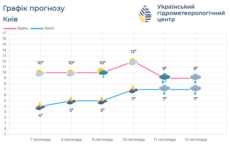 Температура залишатиметься досить стабільною як удень, так і вночі, без різких коливань. У Києві різниця між денними й нічними показниками буде ще меншою завдяки мікроклімату великого міста.