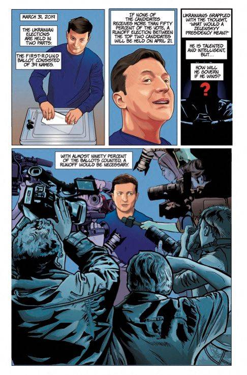 Так, нещодавно вийшов 22-сторінковий глянцевий комікс про основні моменти з життя президента України від видавництва TidalWave Comics. За повідомленням порталу Reuters, комікс називається «Political Power: Volodymyr Zelenskyy» («Політична влада: Володимир Зеленський»).