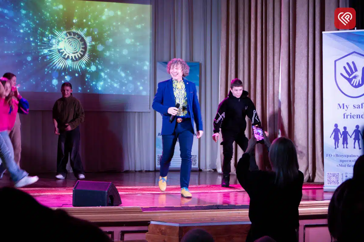 В інтерактивному форматі організатори спільно з представниками поліції провели правопросвітницьке інформування для школярів. Ігор Буранов звернув увагу, що у своїй повсякденній діяльності медійні особистості, у тому числі й учасники туру, також стикаються з проявами булінгу.