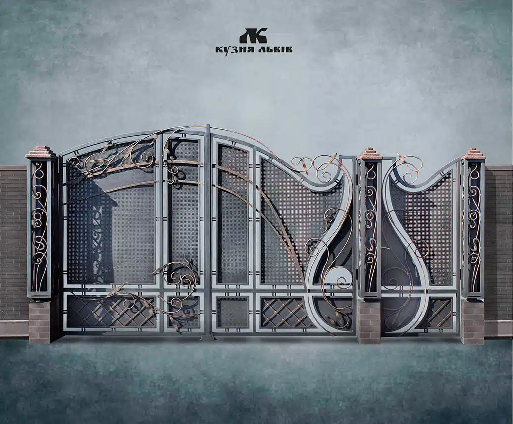 Також кований метал дозволяє створити унікальні ворота, додавши до них декоративні елементи, які вам найбільше підійдуть по стилю. Наприклад, ви можете прикрасити ворота гербами, різними візерунками, монограмами, зробивши їх автентичними.