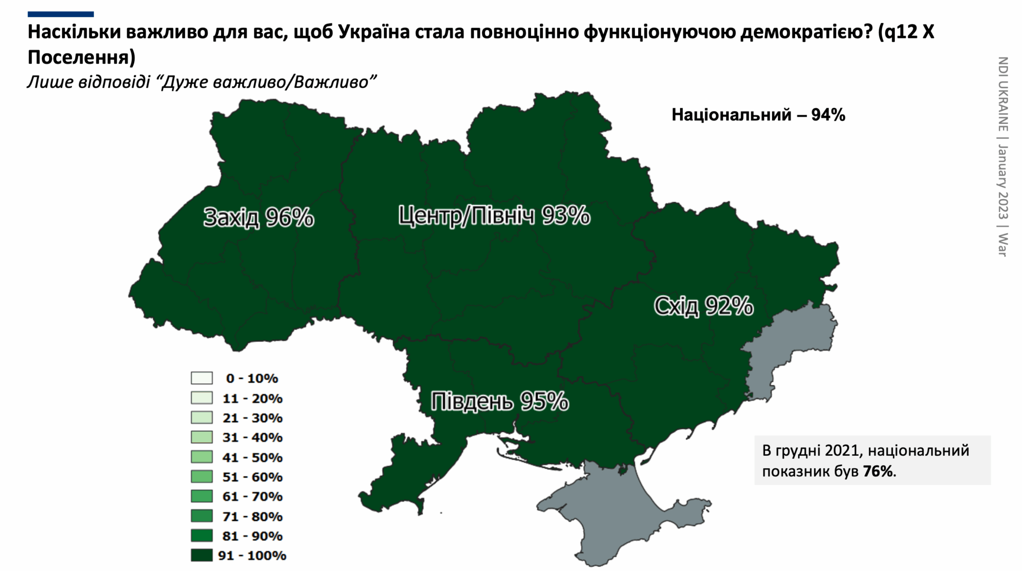 Для 94% українців важливо, щоб Україна стала повноцінно функціонуючою демократією.