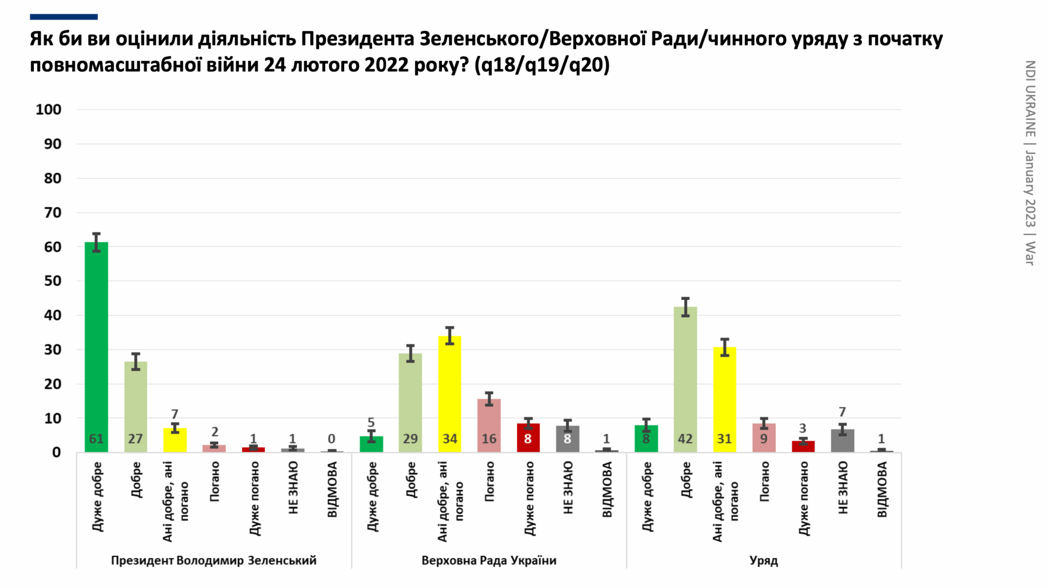Як українці оцінюють діяльність Президента Зеленського/Верховної Ради/чинного уряду з початку повномасштабної війни 24 лютого 2022 року?
