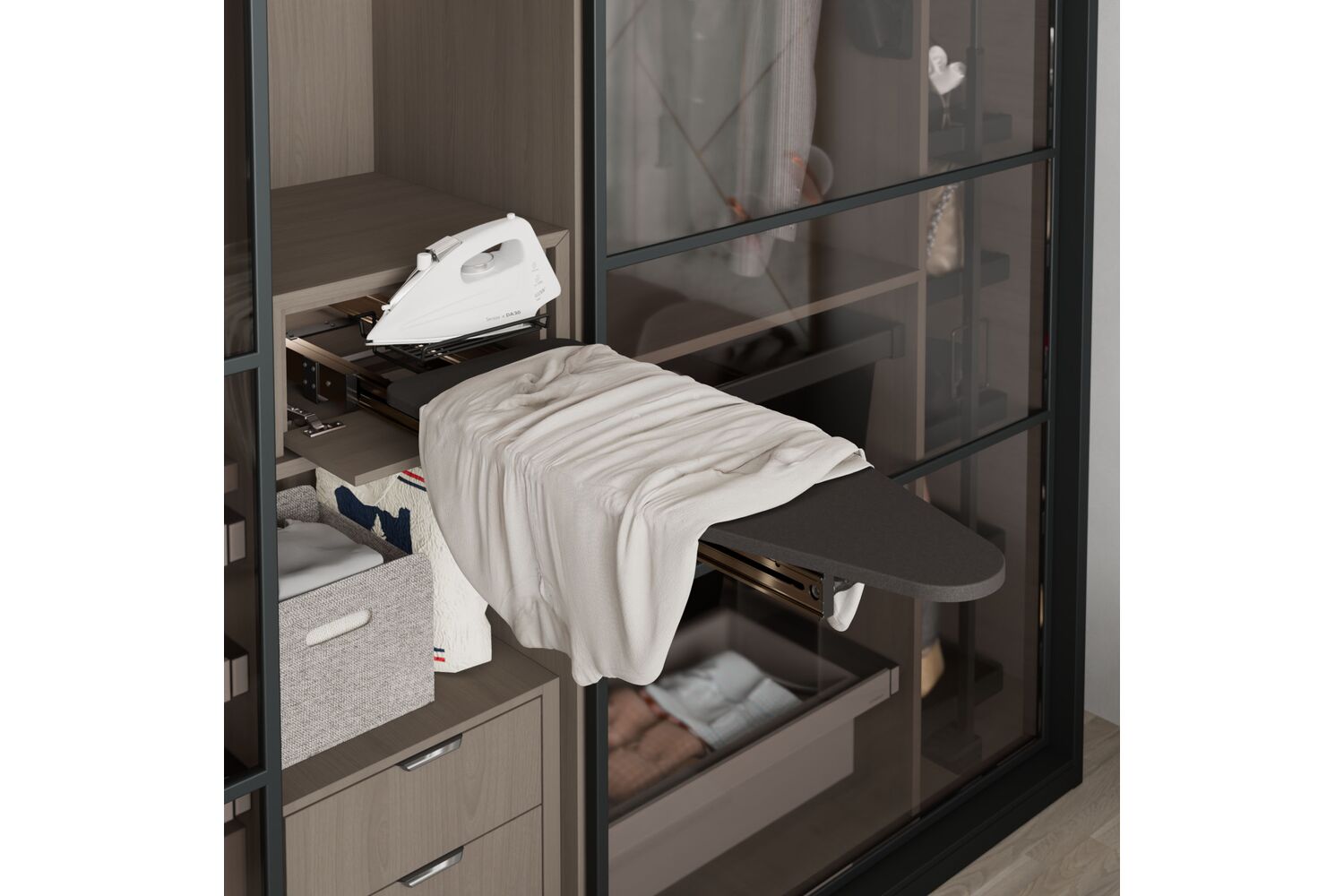 Прасувальна дошка в шафі — це чудовий варіант для людей, які часто користуються праскою, але не хочуть витрачати час на розкладання й прибирання класичної моделі. Також це ідеальне рішення для тих, хто прагне зберегти чистоту й естетику інтер’єру, не захаращуючи приміщення зайвими предметами.
