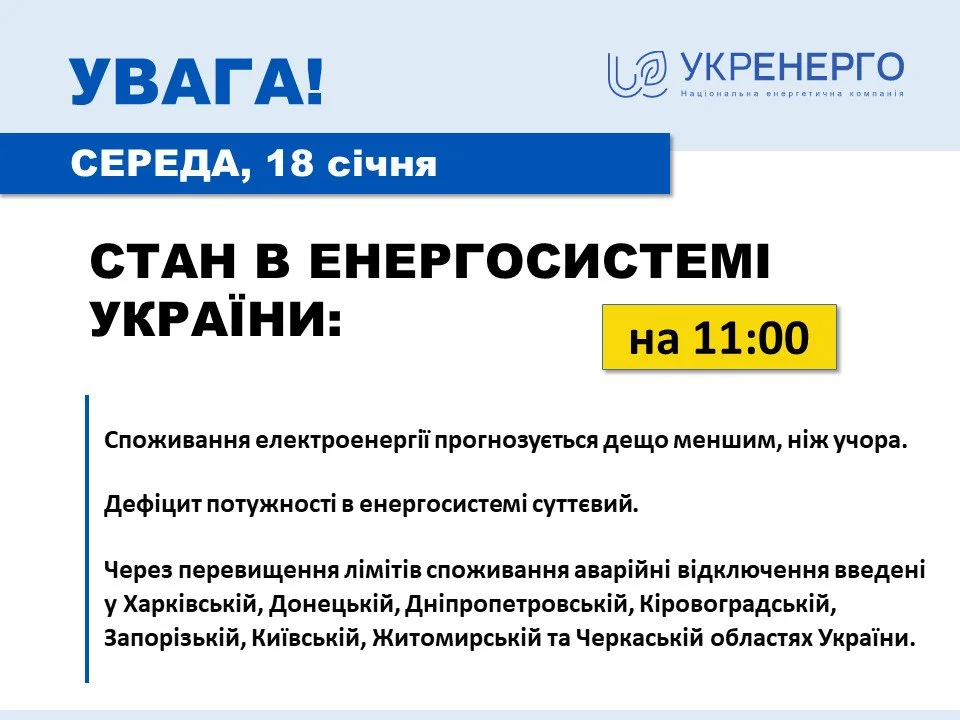 «Наразі через їх перевищення вже застосовані аварійні відключення у Харківській, Донецькій, Дніпропетровській, Кіровоградській, Запорізькій, Київській, Житомирській та Черкаській областях України. Також у районі бойових дій на Харківщині та Донеччині є пошкодження у мережах обленерго», – пишуть енергетики.