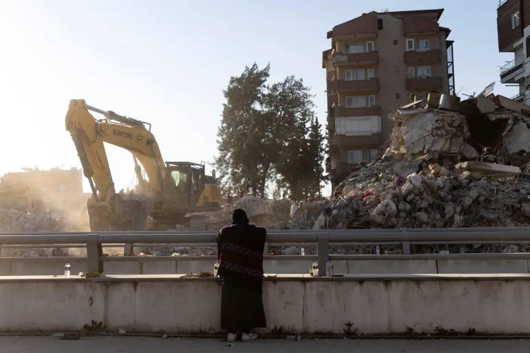 Жінка чекає, поки пошукові групи розкопують уламки будівлі, зруйнованої внаслідок смертоносного землетрусу в Хатаї, Туреччина, 18 лютого 2023 року  [Eloisa Lopez/Reuters]