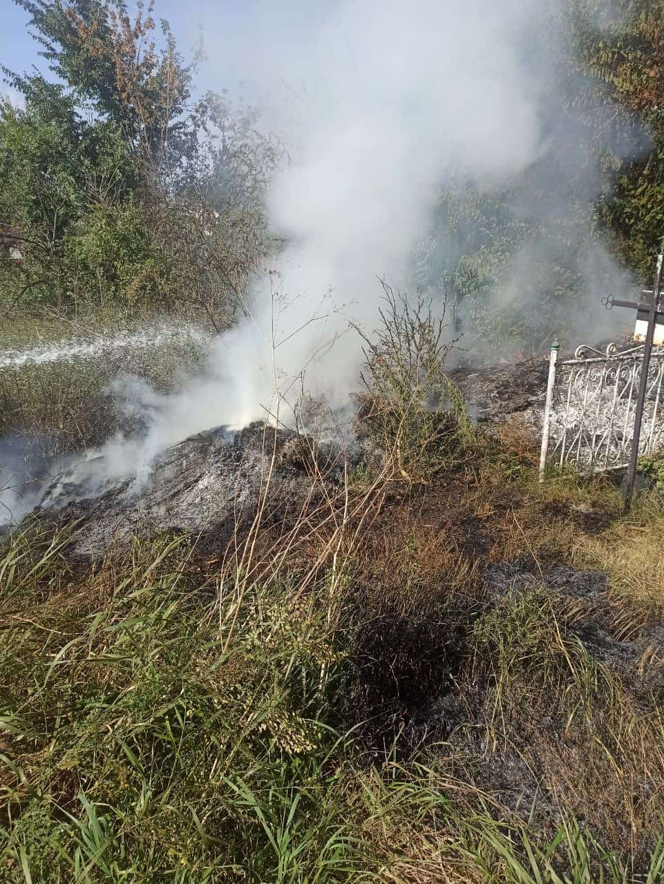 О 13:55 пожежники прибули на місце події та встановили, що горить рослинність на площі 0,03 га, загрози нема.