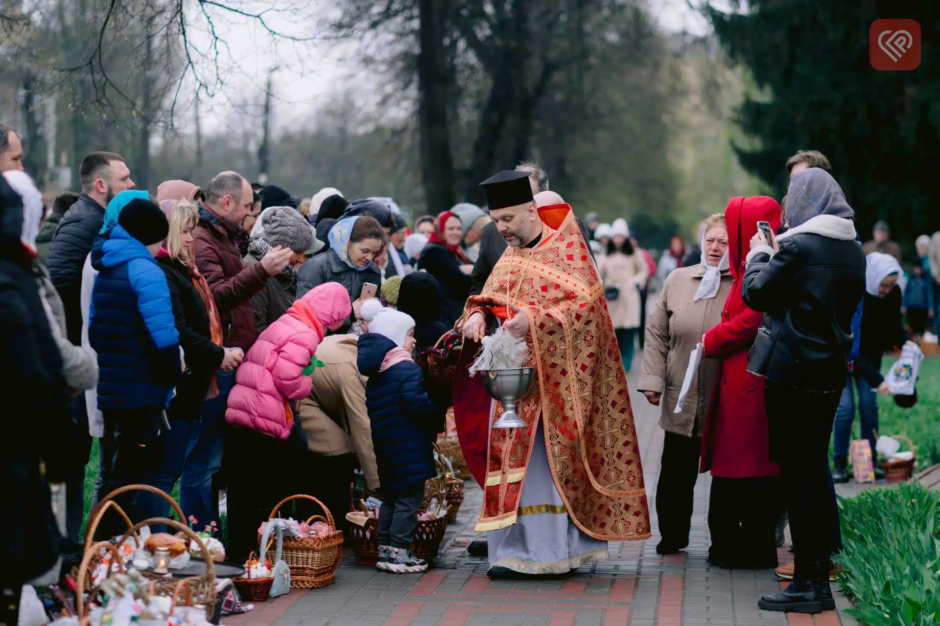 Протоієрей Михайло Юрченко освячує кошики на Великдень (архівне фото редакції, 2023 рік)