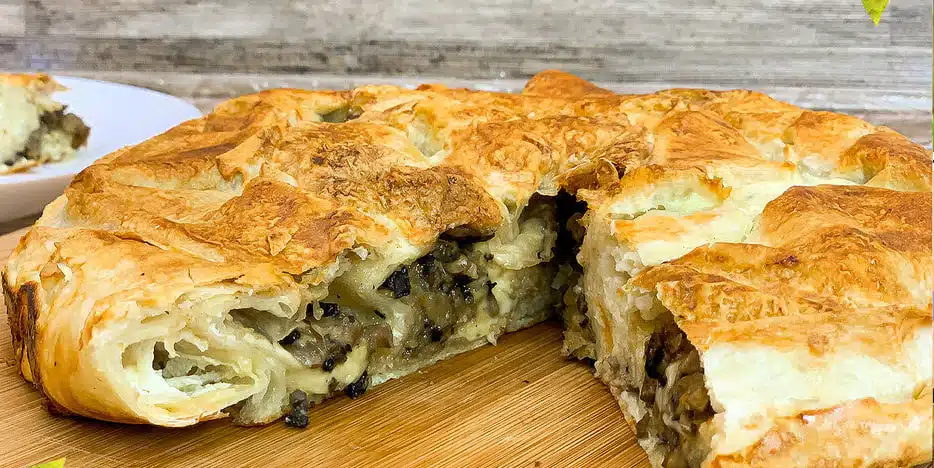Пиріг з лаваша з сиром та грибами