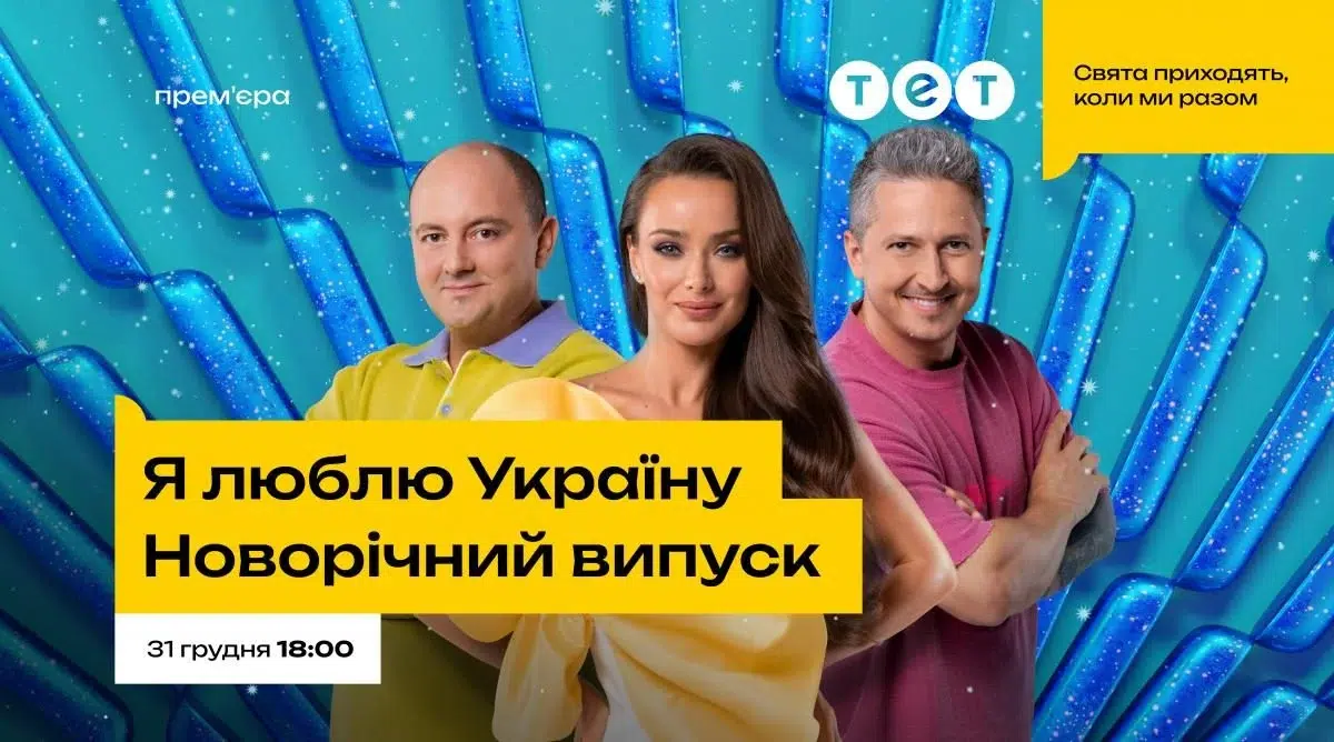 Що подивитися 31 грудня на ТЕТ? Каналу є чим здивувати глядача – це кілька мультфільмів, фільмів та концертів, проте усі реклами спрямовують глядача на те, що 31 грудня о 18:00 студія шоу «Я люблю Україну» перетвориться на казкову зимову країну з блискучими декораціями та безліччю сюрпризів. Ведуча Ксенія Мішина та незмінні капітани команд Олександр Педан і Юрій Ткач підготували захопливу програму, адаптувавши традиційні раунди на новорічний манір.