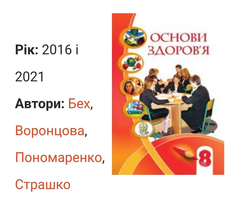 Відмітимо, що підручник з «Основ здоров’я» для учнів 8 класу закладів загальної середньої освіти авторства Бех І. Д., Воронцова Т. В., Пономаренко В. С., Страшко С. В. вже не вперше критикують за сексистські та антинаукові твердження.