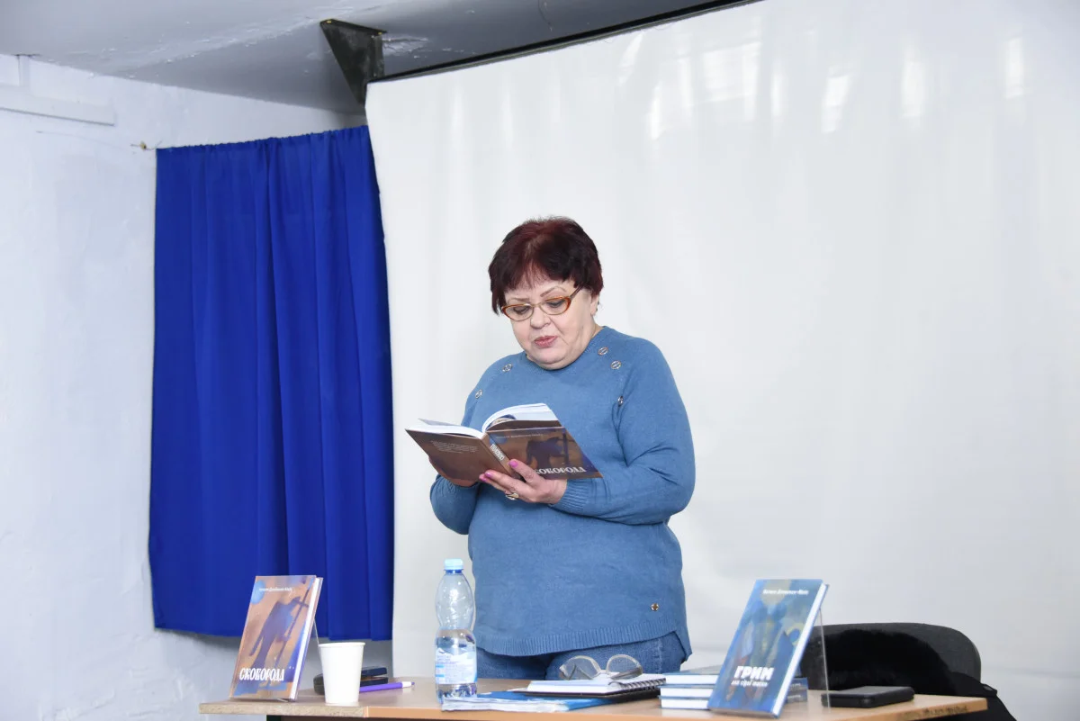 Наталія Дзюбенко-Мейс презентувала загалу нову книгу-поему «Сковорода» та свою попередню працю «Грім для сірої маски». Читала й поезії написаними під час війни які ще не надруковано.