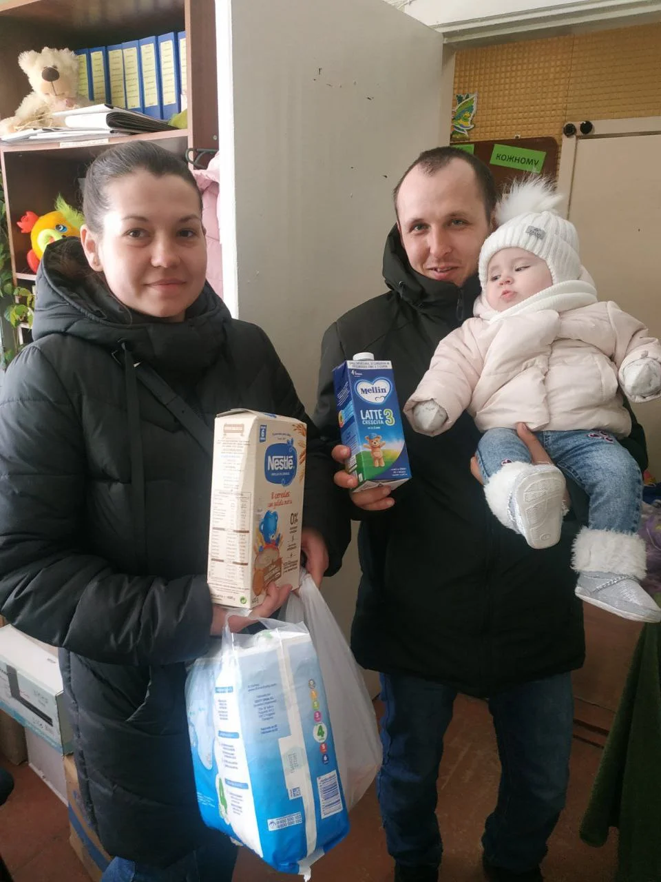 Також у Переяславський координаційний центр для вимушено переміщених осіб надійшла допомога від сім’ї Гордієнка Олександра Івановича: підгузки, дитяче харчування, ліки. Ці товари будуть надаватися біженцям та людям з потребою.