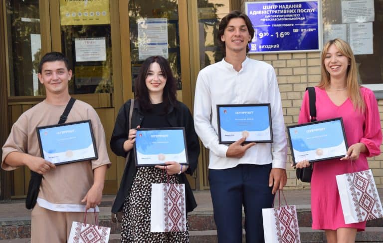 - Кобзар Мирослава проходила стажування у центрі соціальних служб міської ради, не змогла бути особисто присутня на врученні.