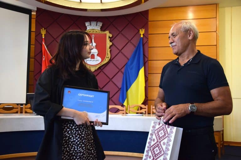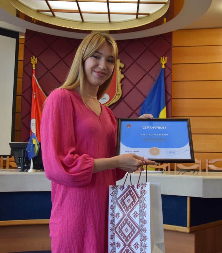 - Кобзар Мирослава проходила стажування у центрі соціальних служб міської ради, не змогла бути особисто присутня на врученні.