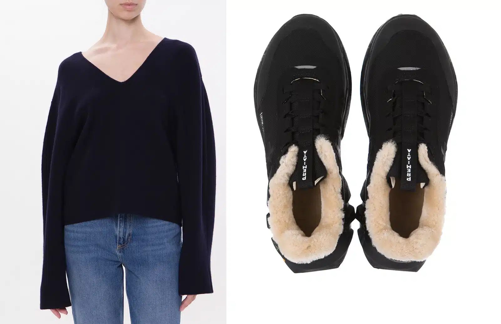 Для тех, кто ищет подарок с эффектом «вау», отлично работает комбинация двух брендов. Стильный образ, собранный из мягкого кэшмера и современной обуви, выглядит гармонично и по-европейски утонченно.
