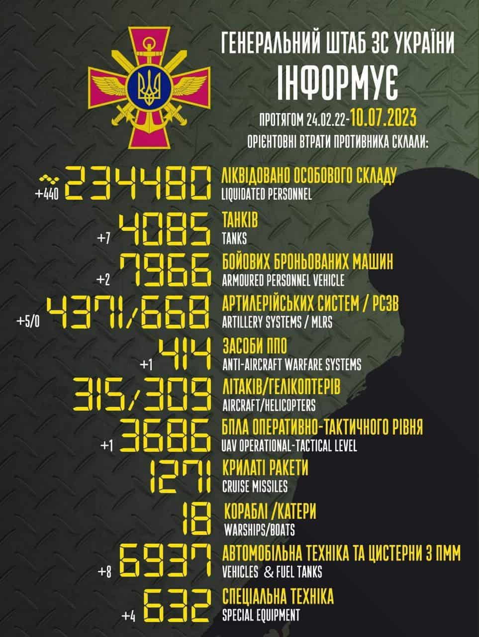 Загальні бойові втрати противника з 24.02.22 по 10.07.23