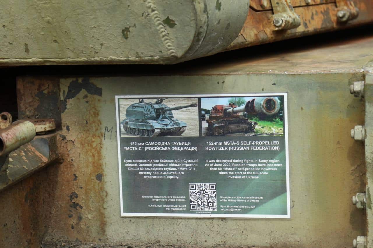 У своїй публікації Міноборони виклали фотографії знищеної техніки, яку демонструють у Києві на Софіївській площі.