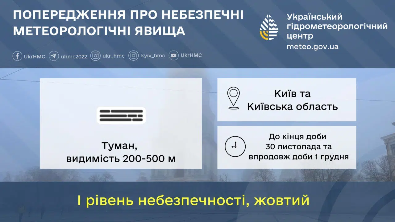 - Тривалість: до кінця доби 30 листопада та протягом 1 грудня.