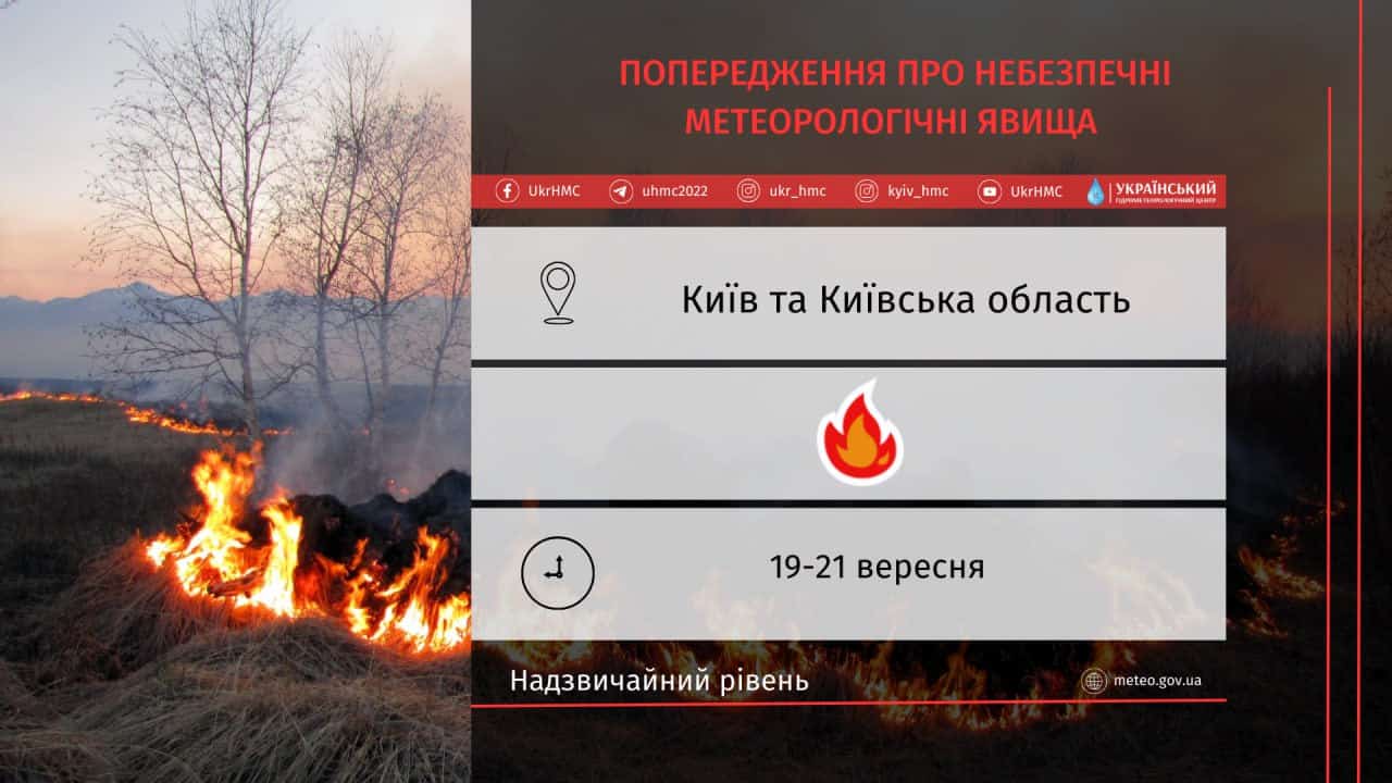 За інформацією Укргідрометцентру, 19-21 вересня в регіоні спостерігатиметься надзвичайний рівень пожежної небезпеки, інформує Proslav.