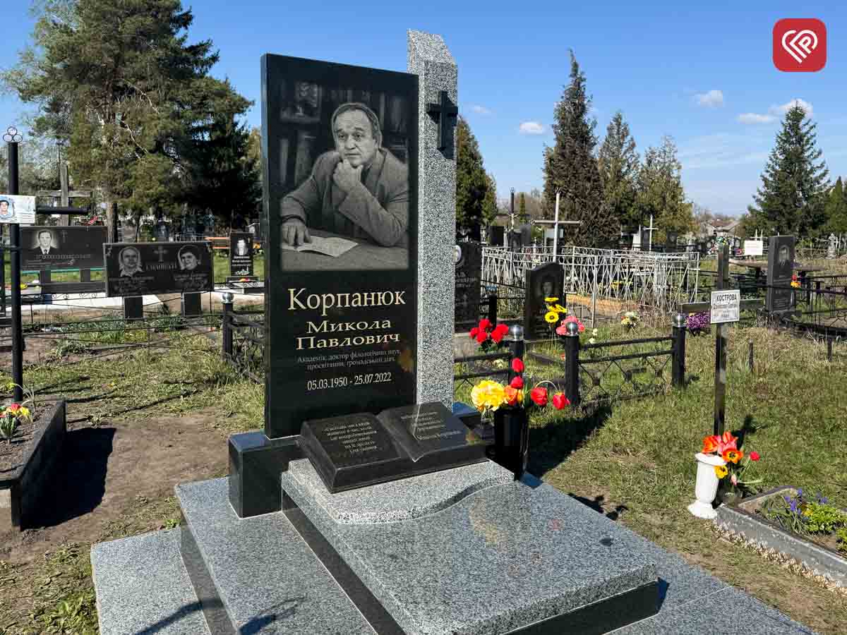 Пройшовши трішки далі не можна не помітити могили Миколи Корпанюка – видатний український науковець, доктор філологічних наук та професор університету, чия постать стала символом національного відродження міста. Як один із фундаторів Народного руху та «Просвіти» на Переяславщині, він присвятив життя ідеї соборної України, передбачивши потребу в духовному та військовому захисті держави у своїх фундаментальних працях «Слово. Хрест. Шабля» та «Перунова звитяга нації».