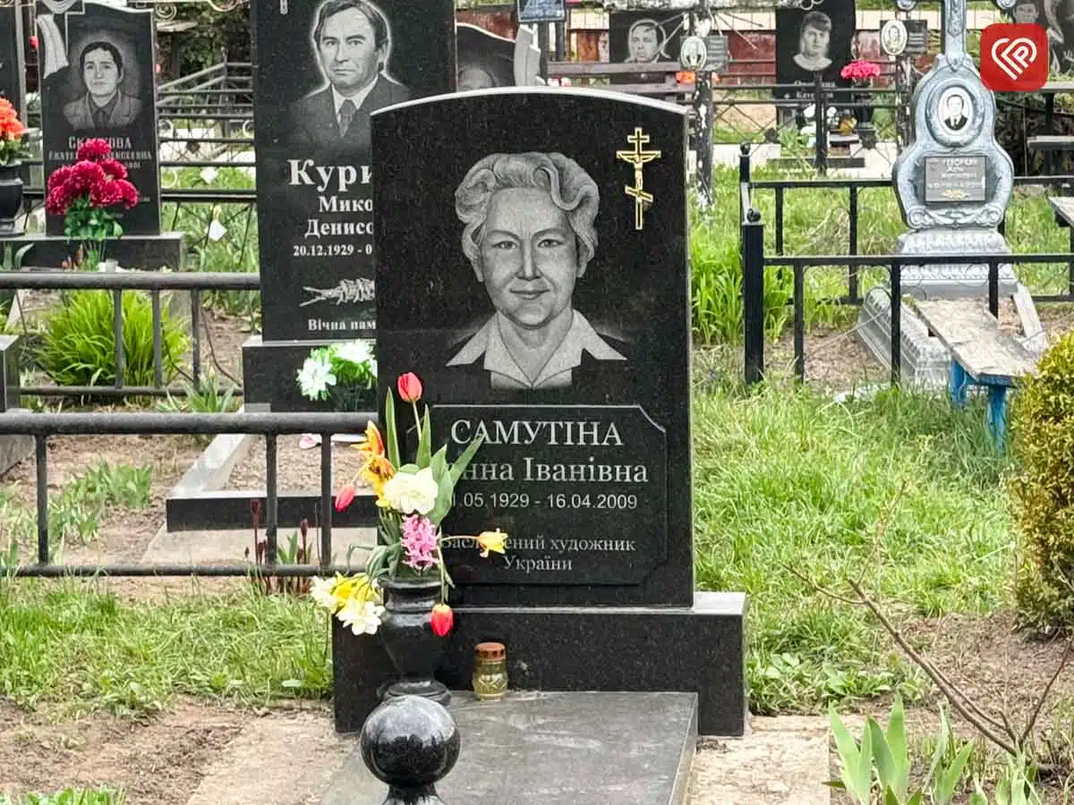 Трішки вглиб правої частини цвинтаря похована Ганна Самутіна – видатна Заслужена художниця України, чий життєвий і творчий шлях став невід’ємною частиною культурної історії Переяслава. За своє життя мисткиня створила понад 400 картин, проте її талант проявився у надзвичайному різноманітті жанрів: від гобеленів і кераміки до книжкової графіки та монументальних мозаїчних панно.