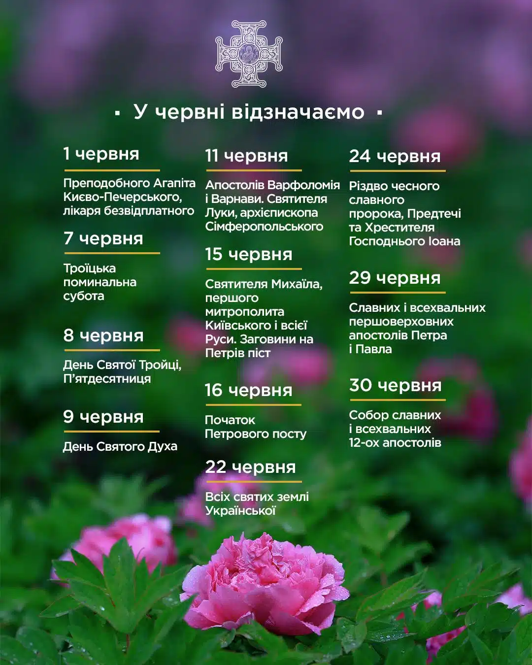 - 16 червня розпочинається Петрів піст, який триватиме до 28 червня.