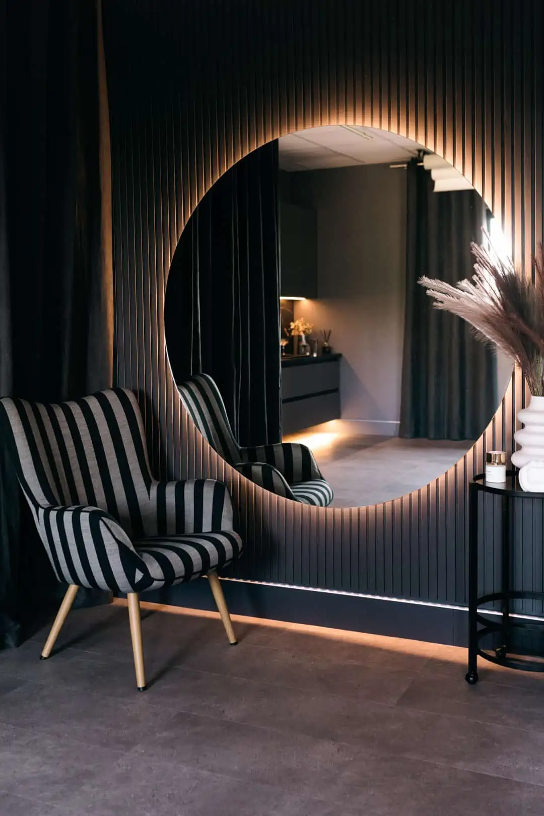 Сучасний та елегантний дизайн «фотоЛАВ» створює атмосферу затишку. В просторому залі є світлий диван та крісла, вишукана кухня та родзинка фотостудії – велике дзеркало. Інтер’єрні деталі пересуваються і легко комбінуються, що дозволяє на власний смак підібрати потрібний реквізит.