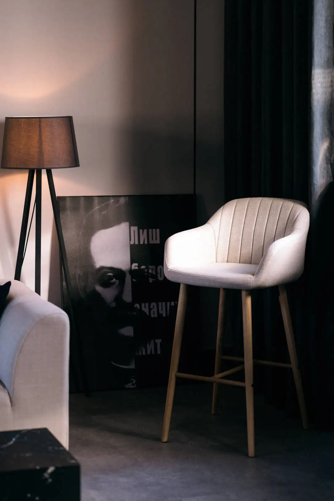 – Мені доводилося працювати у різних студіях і цей досвід дав розуміння, чого точно не має бути. Не хотілося, щоб це була банальна студія з різними зонами: біля однієї стіни камін із пінопласту, біля сусідньої – екзотичний сад. Тому ми створили цілісний простір, який виглядає натурально, як стильна квартира. У ньому можна фотографувати з будь-якої точки, не думаючи, чи не потрапить у кадр щось зайве. Натомість зосередитися на моделі та її емоціях. Продумати дизайн інтер’єру до дрібниць допомагали дружина та сестра Тетяна – вона в цьому чудово розуміється. Багато чого у ремонті робив своїми руками з допомогою друзів – Олега Павленка й Олександра Артюха.