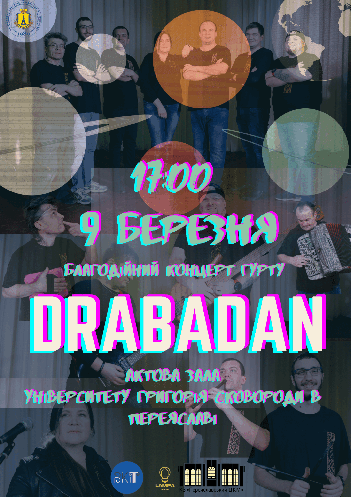 У день народження великого українського митця – Тараса Шевченка, 9 березня 2023 року, у актовій залі Університету Григорія Сковороди в Переяславі відбудеться благодійний концерт – довгоочікувана презентація альбому відомого переяславського гурту «Драбадан» «В душі війна». Початок о 17:00.