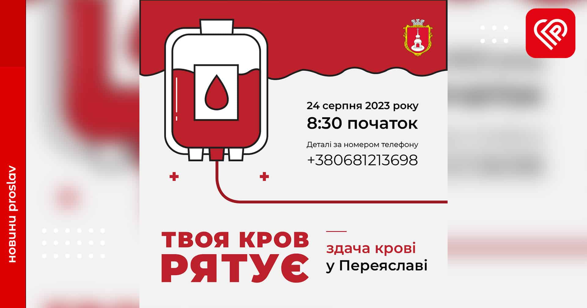 24 серпня у Переяславі можна буде стати донором крові, про це Proslav повідомили у Переяславській міській раді.