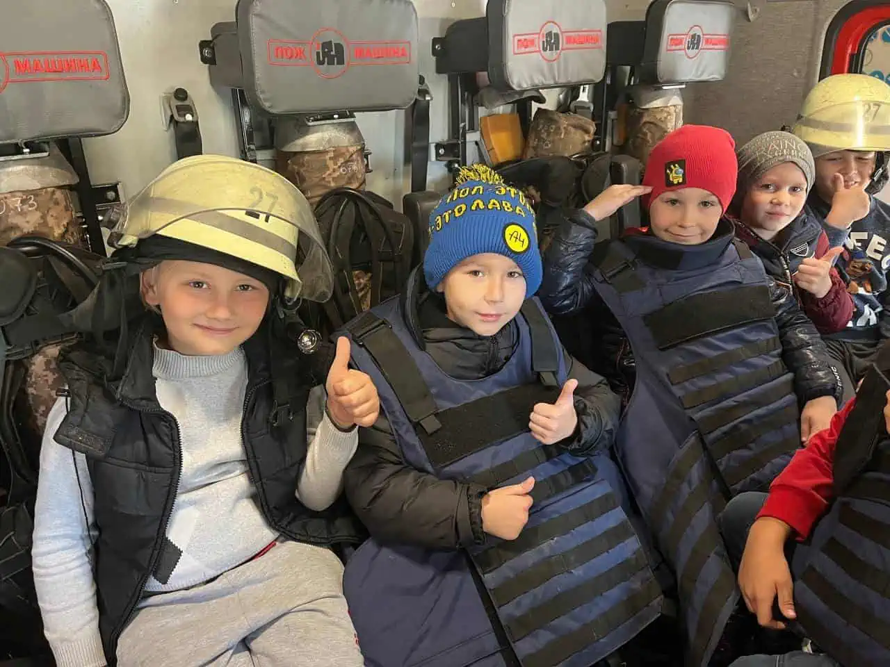 Фахівці ДСНС показали маленьким гостям не лише техніку та спорядження, а й справжній пожежний автомобіль. Школярі змогли посидіти у ньому та уявити себе справжніми рятувальниками.