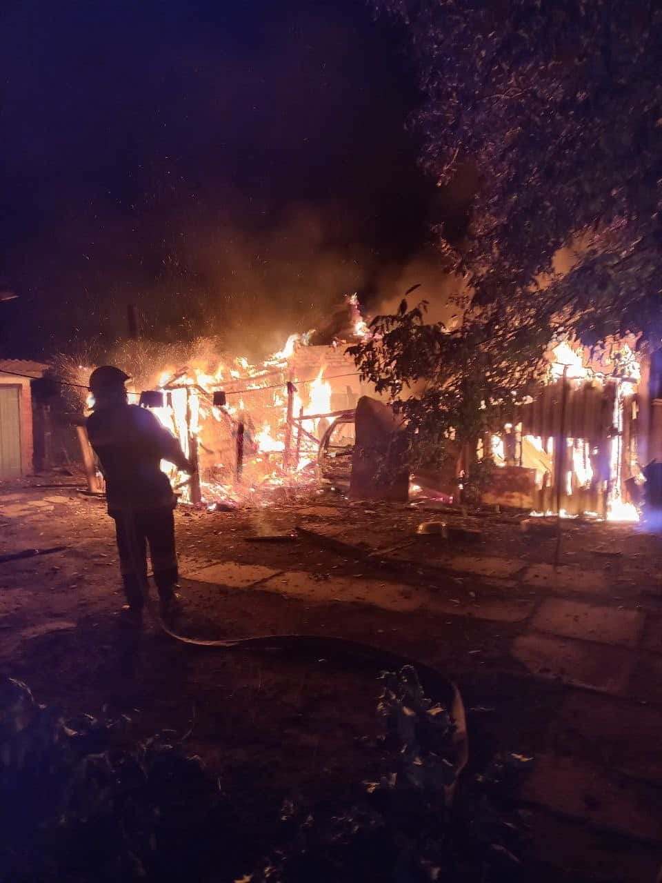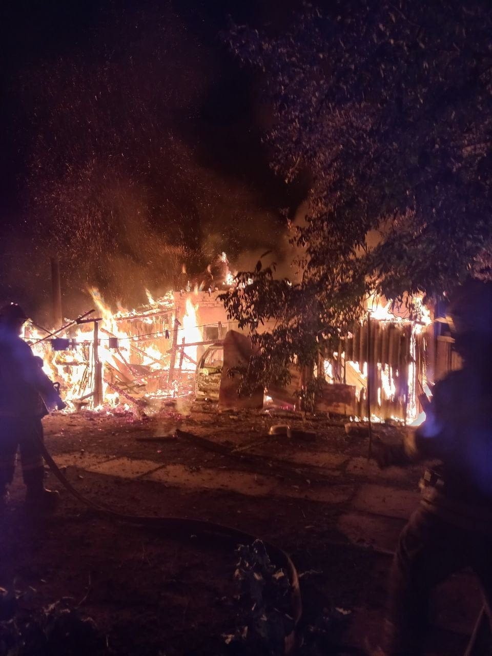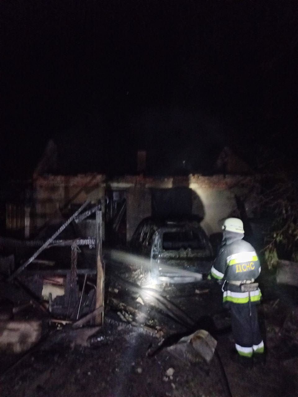 Внаслідок пожежі, вогнем було знищено автомобіль марки Opel, мотоблок та крівлю по всій площі займання. О 01:55 завершились роботи з розборки та проливки конструкцій.