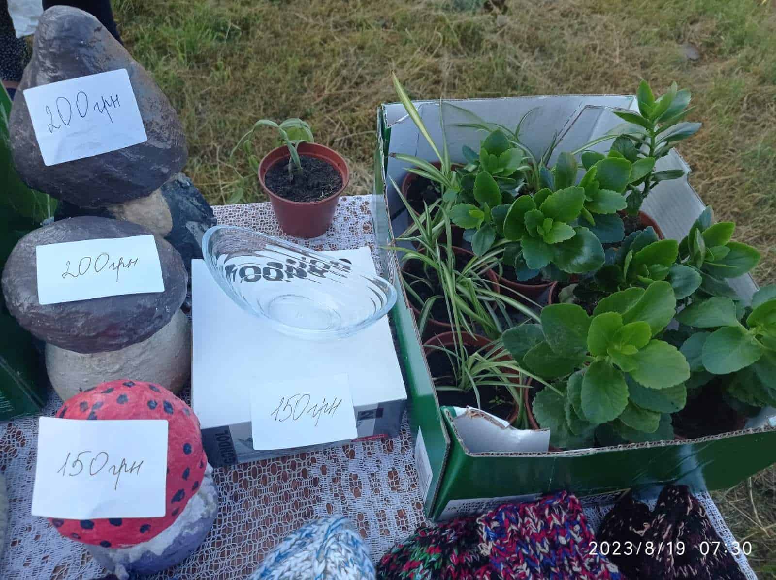 Також на ярмарку можна було придбати грибочки з цементу (Ірина Арєстова), в’язані шкарпетки (Надія Драчевська та Ірина Арєстова), квіти, посаджені дітками та плетені браслети від Ковалинського будинку культури. Відвідавши ярмарок, кожен отримав незабутні емоції, а головне – підтримав наших захисників.