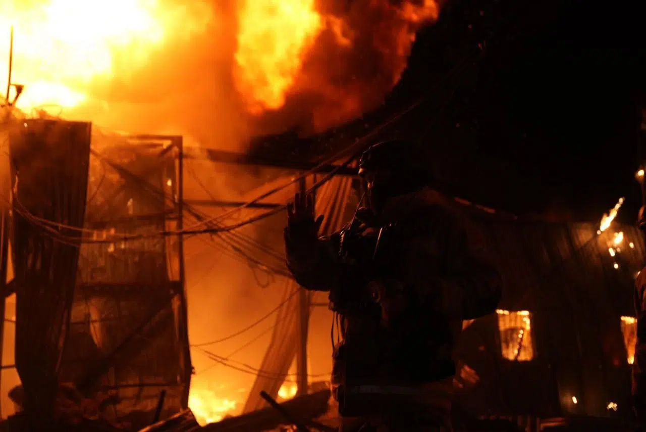 Оболонський район: за однією адресою пожежа виникла у меблевому цеху з розповсюдженням полумʼя на ще одну складську будівлю. За іншою – сталось часткове руйнування 3,4,5 поверхів 5-поверхового бізнес-центру.
