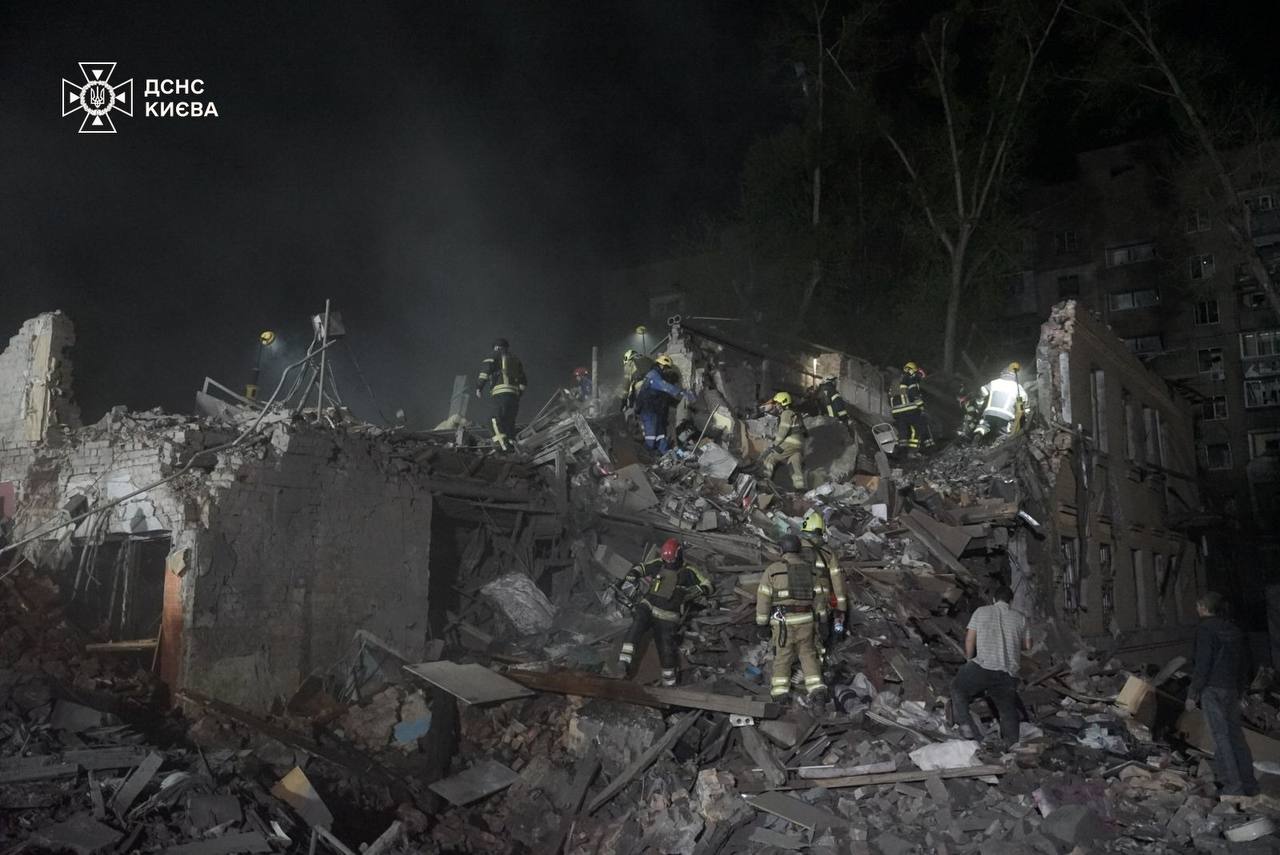«Сталися руйнування в житлових будинках: тривають пошуки людей під завалами. Виникли пожежі в гаражах, адмінбудівлі, нежитлових будівлях. Наразі у 5 районах столиці триває ліквідація наслідків нічного обстрілу. Працюють психологи та кінологи ДСНС», – йдеться у повідомленні.