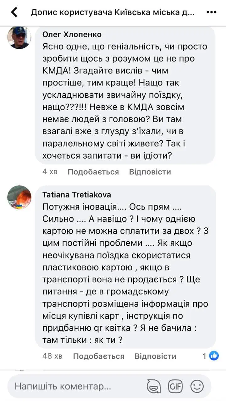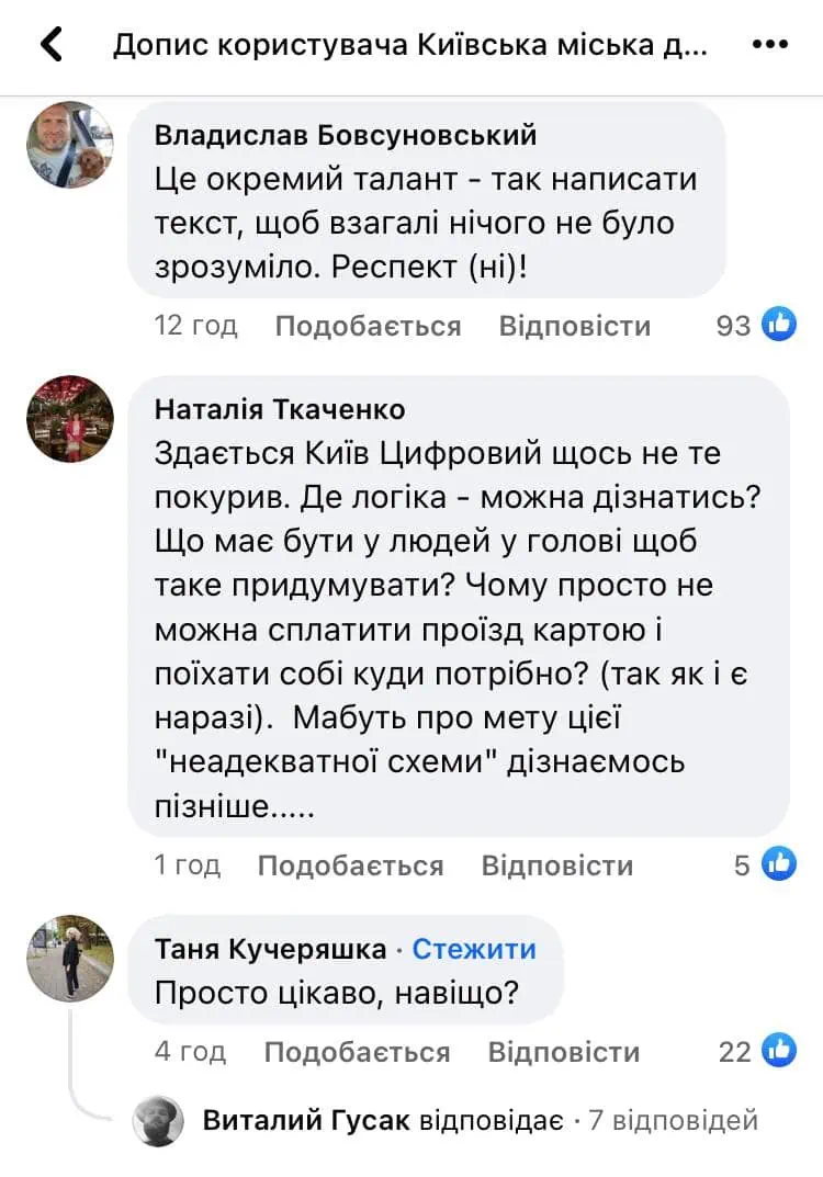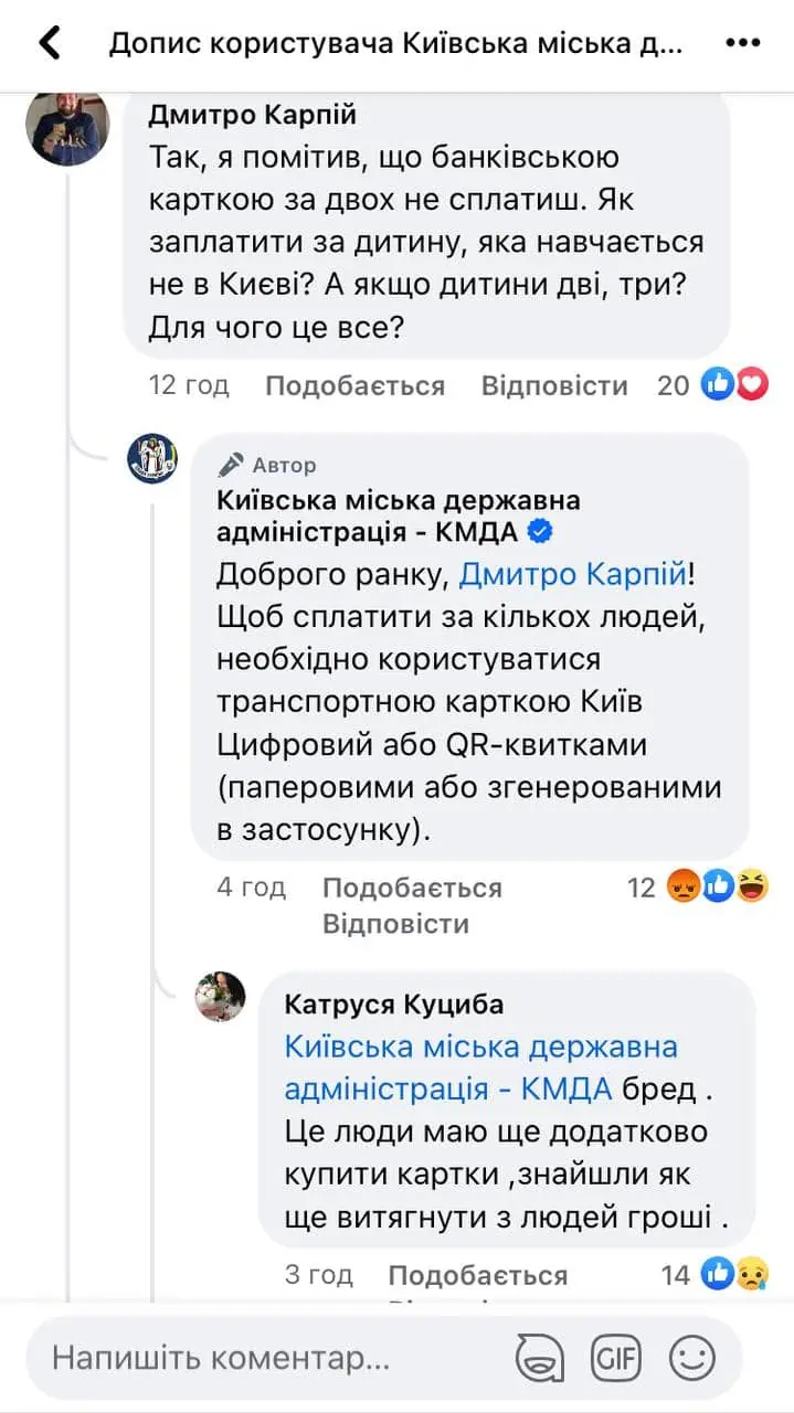 У коментарях під дописом КМДА у фейсбуці кияни масово не розуміють нової системи оплати та яку мету мають анонсовані нововведення.