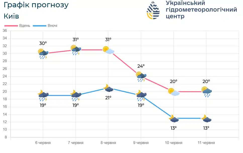 У гідрометцентрі попередили, що з 7 по 11 червня на Київщині короткочасні грозові дощі чергуватимуться з періодами сухої погоди.