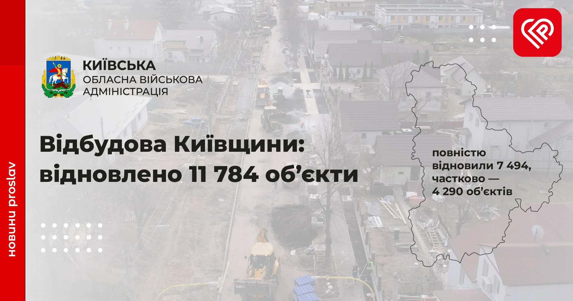 Повідомляється, що у Київській області відновлено повністю та частково вже 11 784 об’єкти.