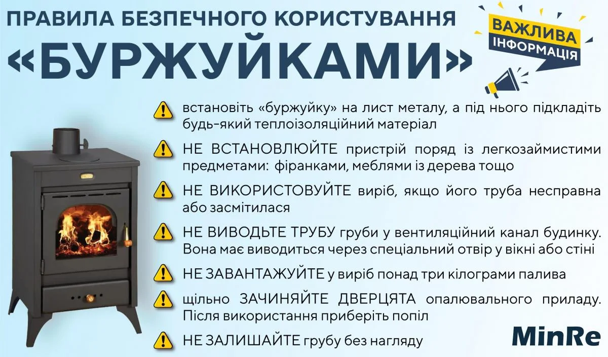 У Мінреінтеграції нагадали правила безпечного користування обігрівачами, «буржуйками» та пічками